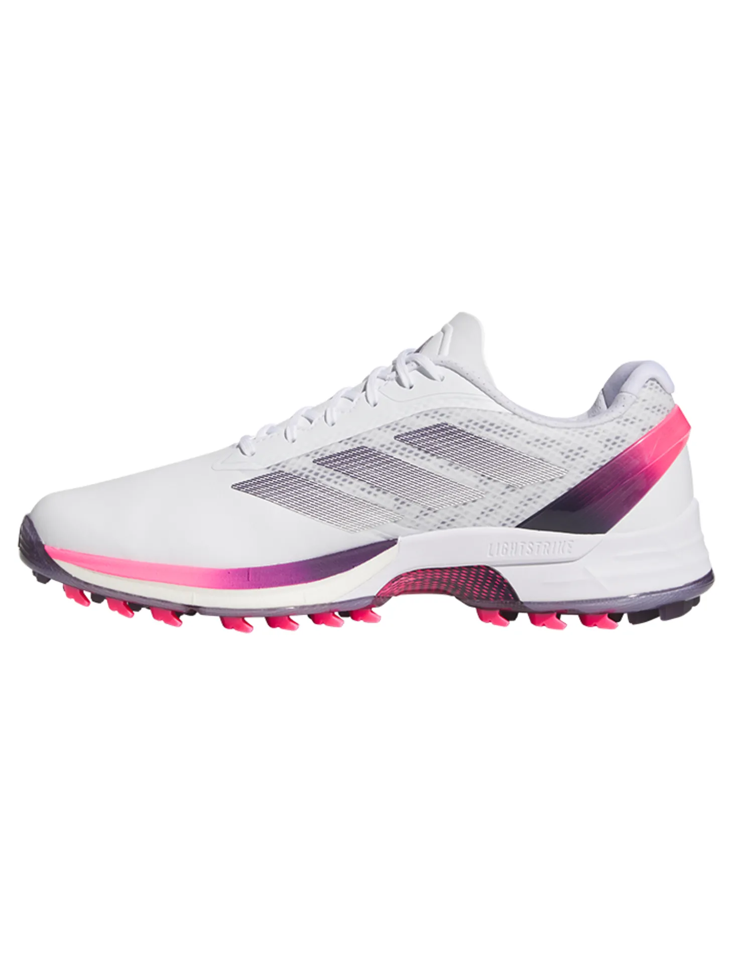 The adidas Adizero ZG Spikeless Golf Shoes (White Pink) will chase your low scores. Lightweight yet packed with tech, they feature ultralight Lightstrike cushioning to support focused play, and a dynamic stability system for confident footing on greens and fairways.