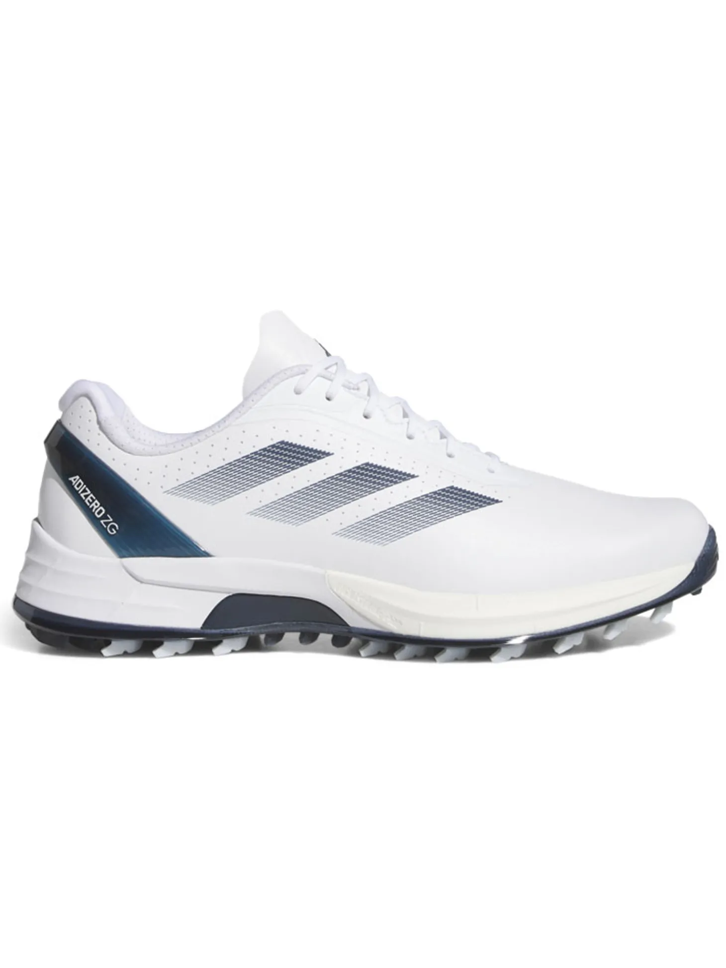 The adidas Adizero ZG Spikeless Golf Shoes (White Navy) will chase your low scores. Lightweight yet packed with tech, they feature ultralight Lightstrike cushioning to support focused play, and a dynamic stability system for confident footing on greens and fairways.