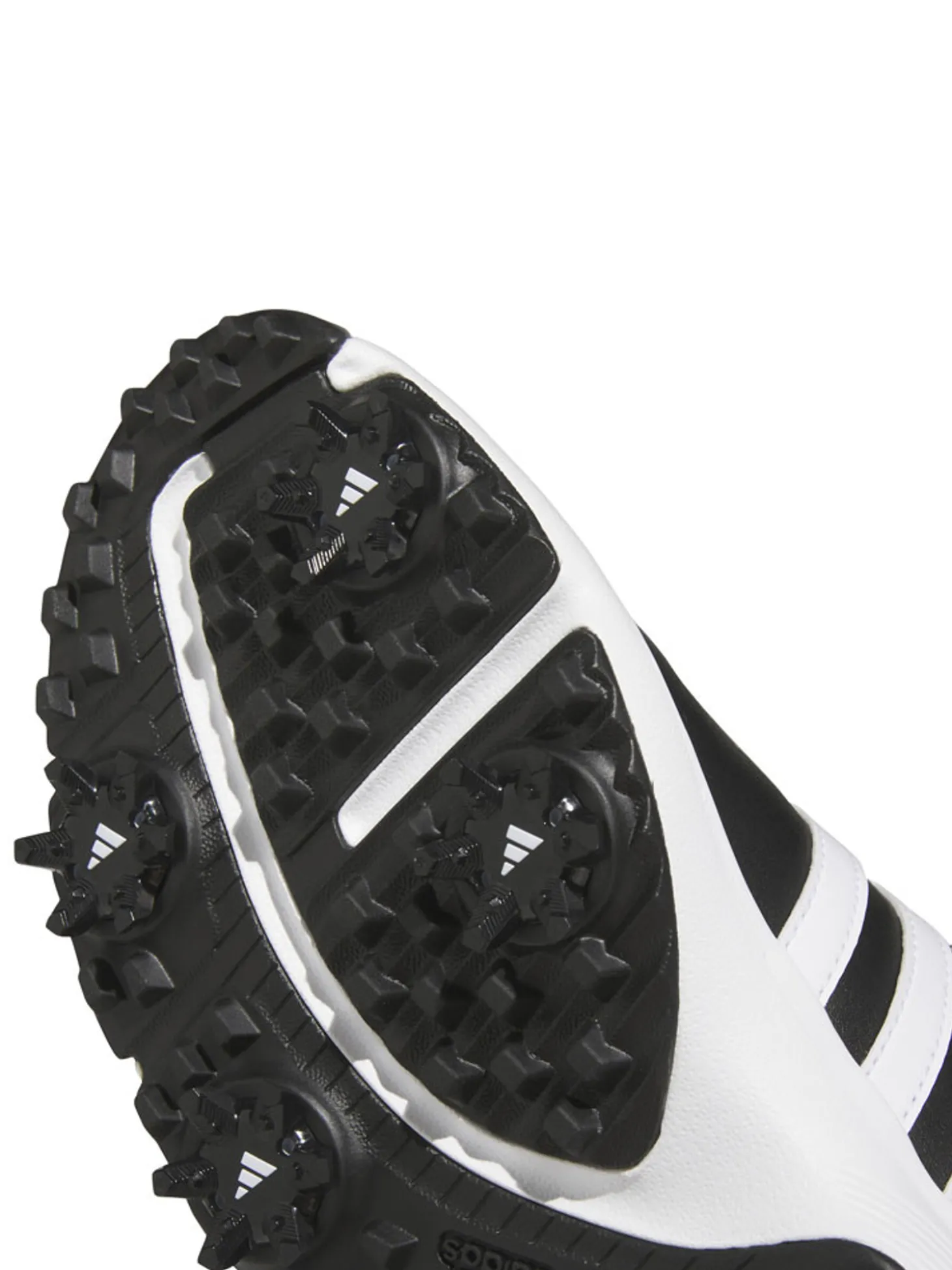 Designed for optimal traction, the TPU outsole features replaceable spikes where golfers need them most. adidas also included flex grooves in the secondary traction, finished with high gloss to help reduce clogging in the footwear. adidas also placed a spike closer to the toe with an aim of allowing for better toe-off through the swing and improved power from the ground.