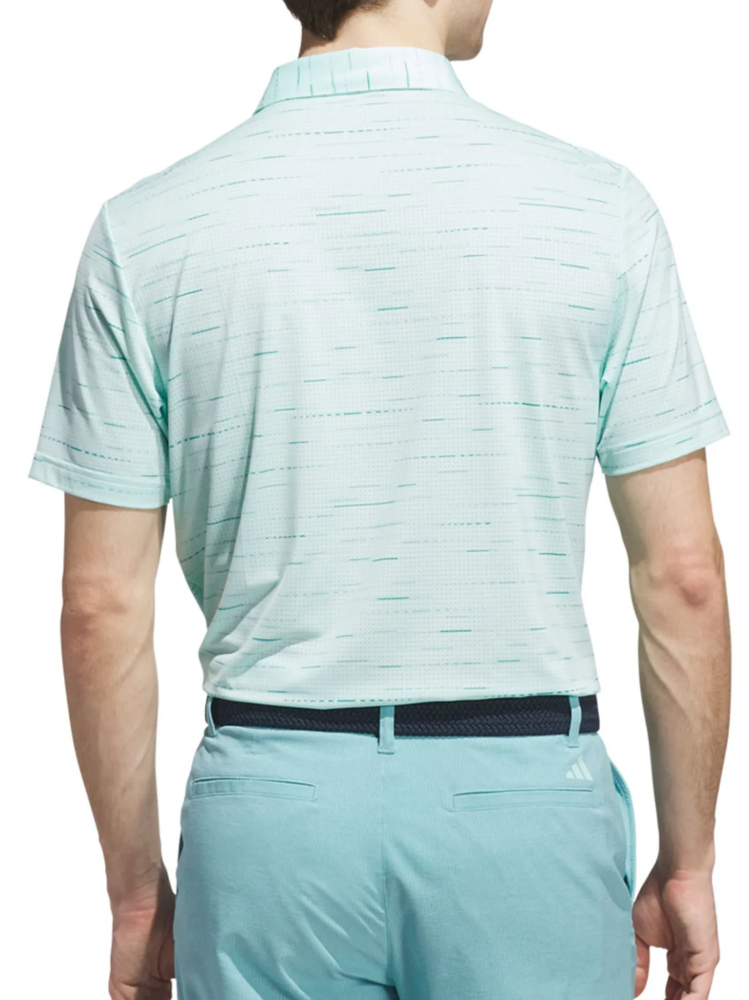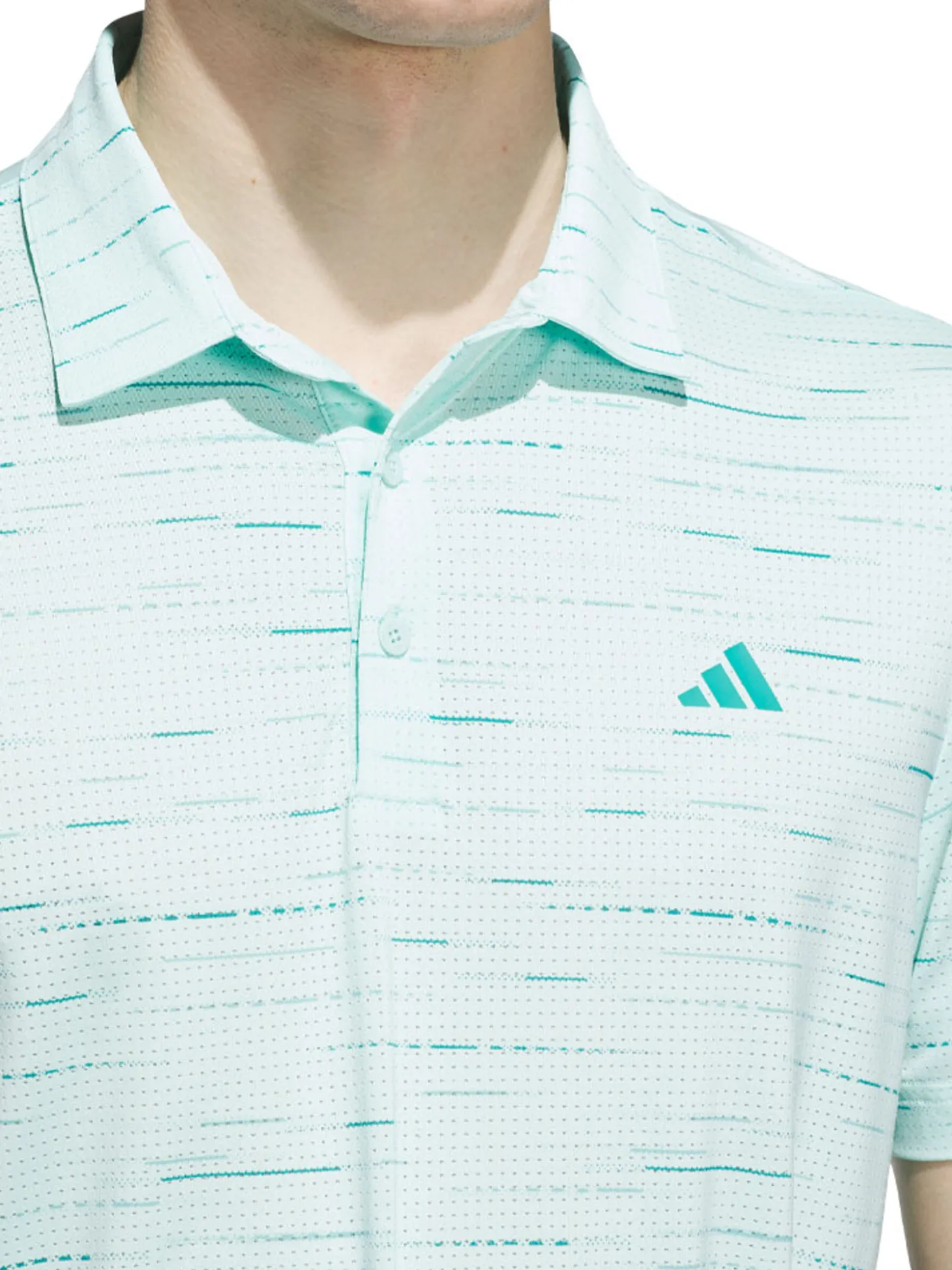 The adidas Ultimate365 Mesh Glimmer Print Polo Shirt (Aqua) goes hand in hand with performance and comfort.