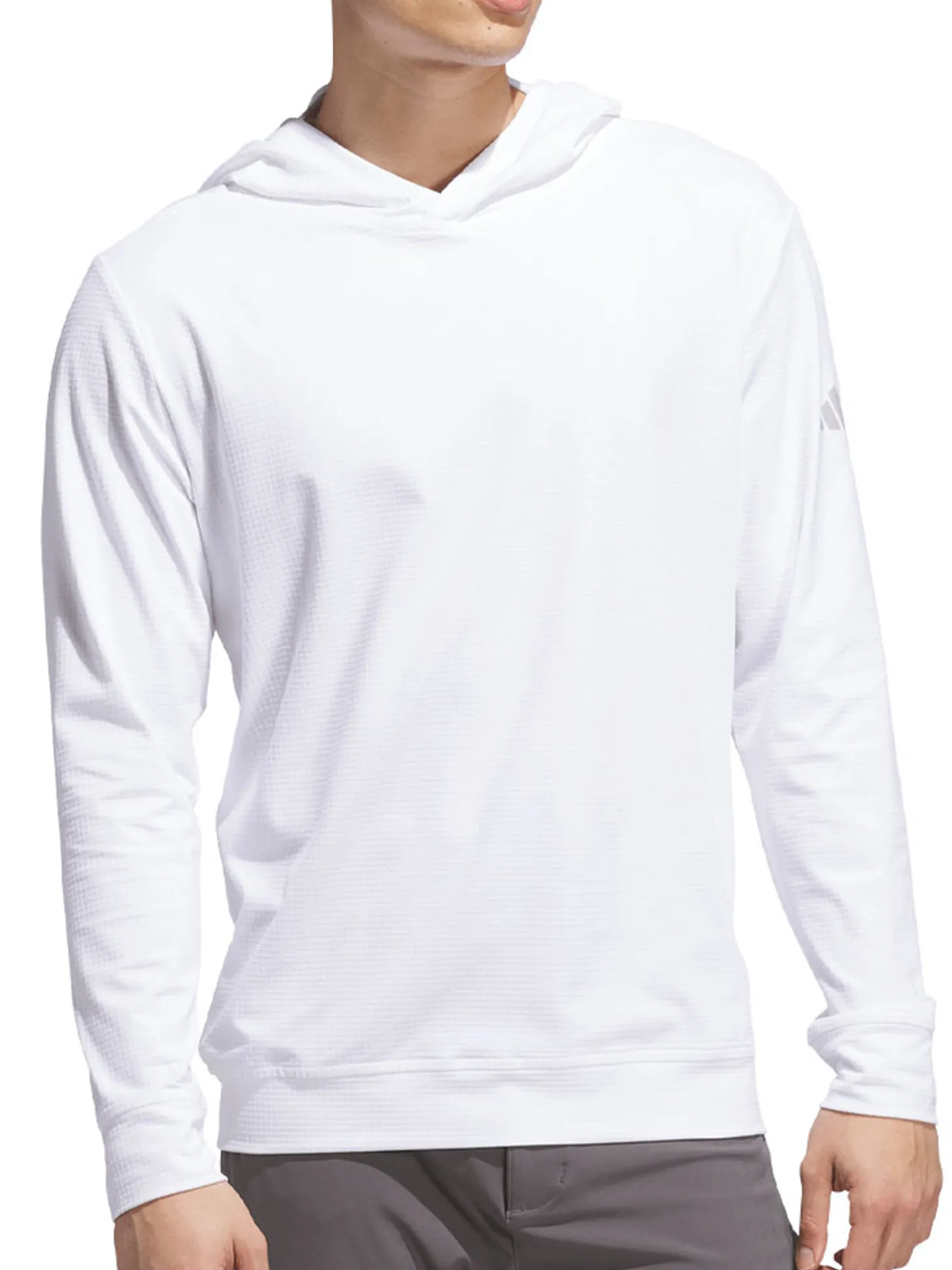 The adidas Ultimate365 Pullover Hoodie (White) is the layer that lets you play in comfort for cool mornings and chilly afternoons on the course.
