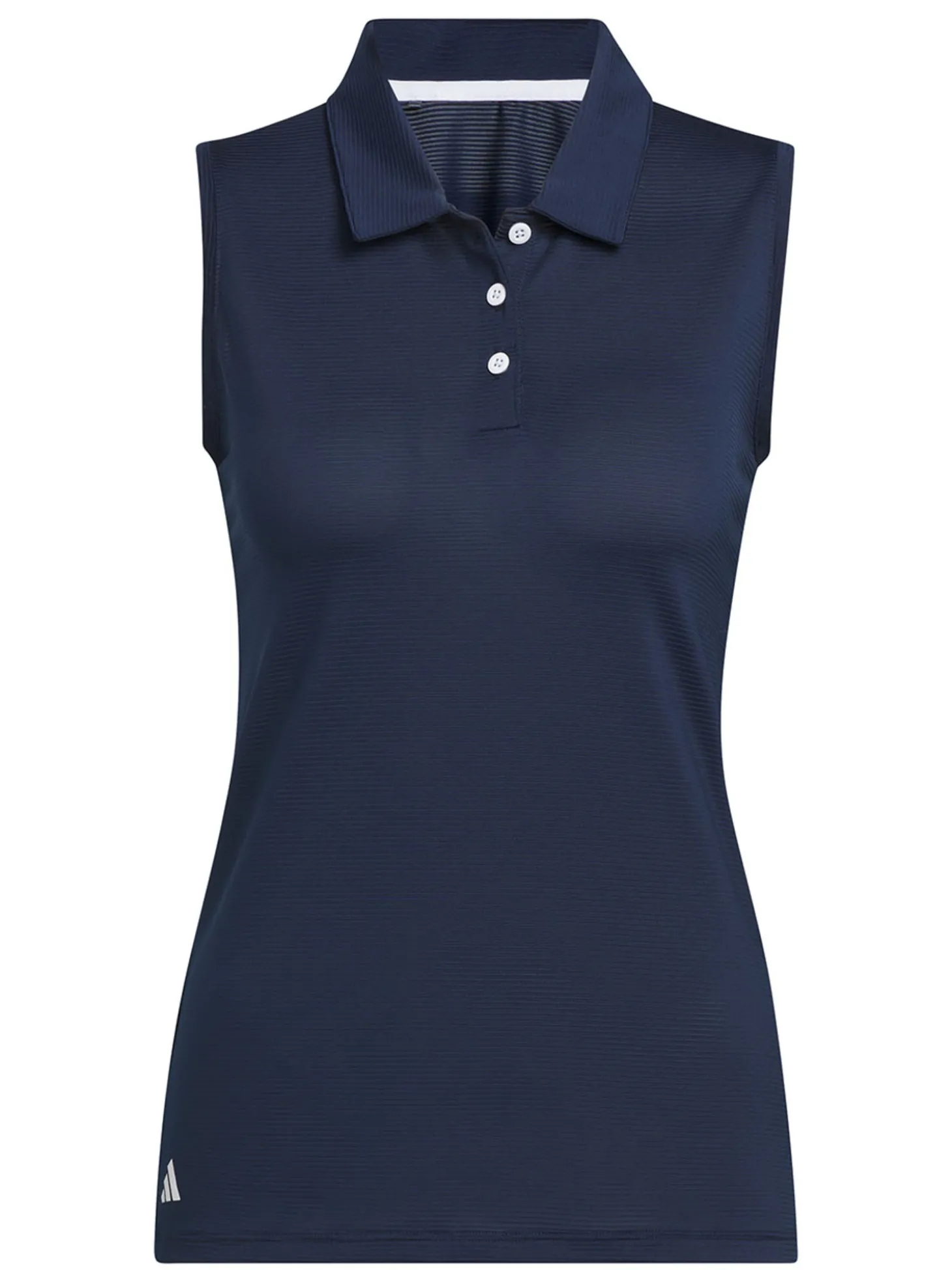 The adidas Womens Ottoman Sleeveless Polo Shirt (Navy) is a piece you can count on for an easy-moving feel and versatile style whether for social round or competitive play. .