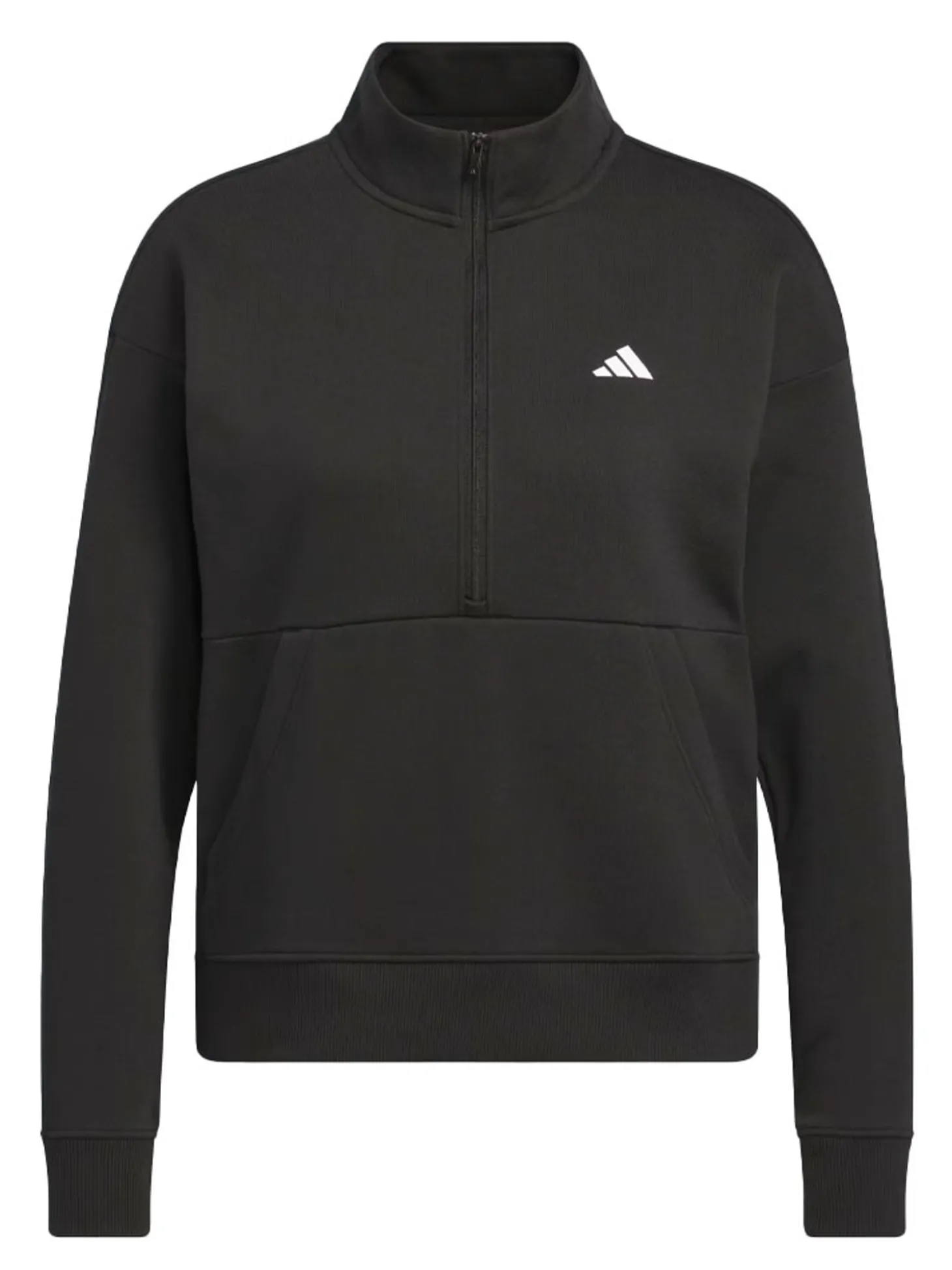 The adidas Womens Performance Quarter-Zip Jacket (Black) adds cosy warmth to chilly days at the course. It fits loose so you can layer it easily over a polo or tee, and the half zip lets you adjust the ventilation as needed.