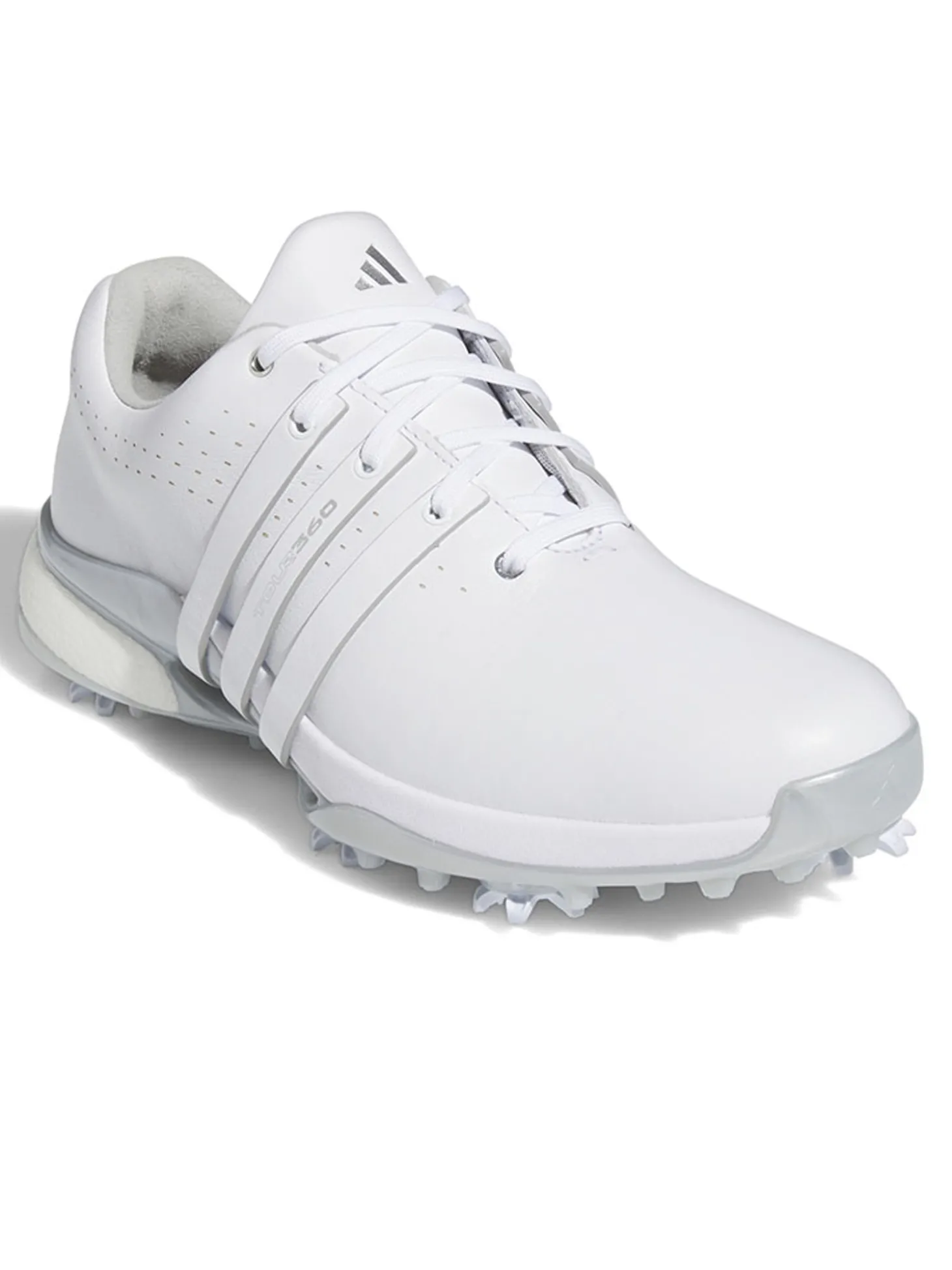 The adidas Tour360 24 BOOST Golf Shoes (White) are made for dedicated golfers looking for golf shoes that inspire confidence and style. They wrap your feet in premium materials and feature leading-edge footwear technology for elite-level performance. Elevate your game with golf shoes that let you look and feel your best.