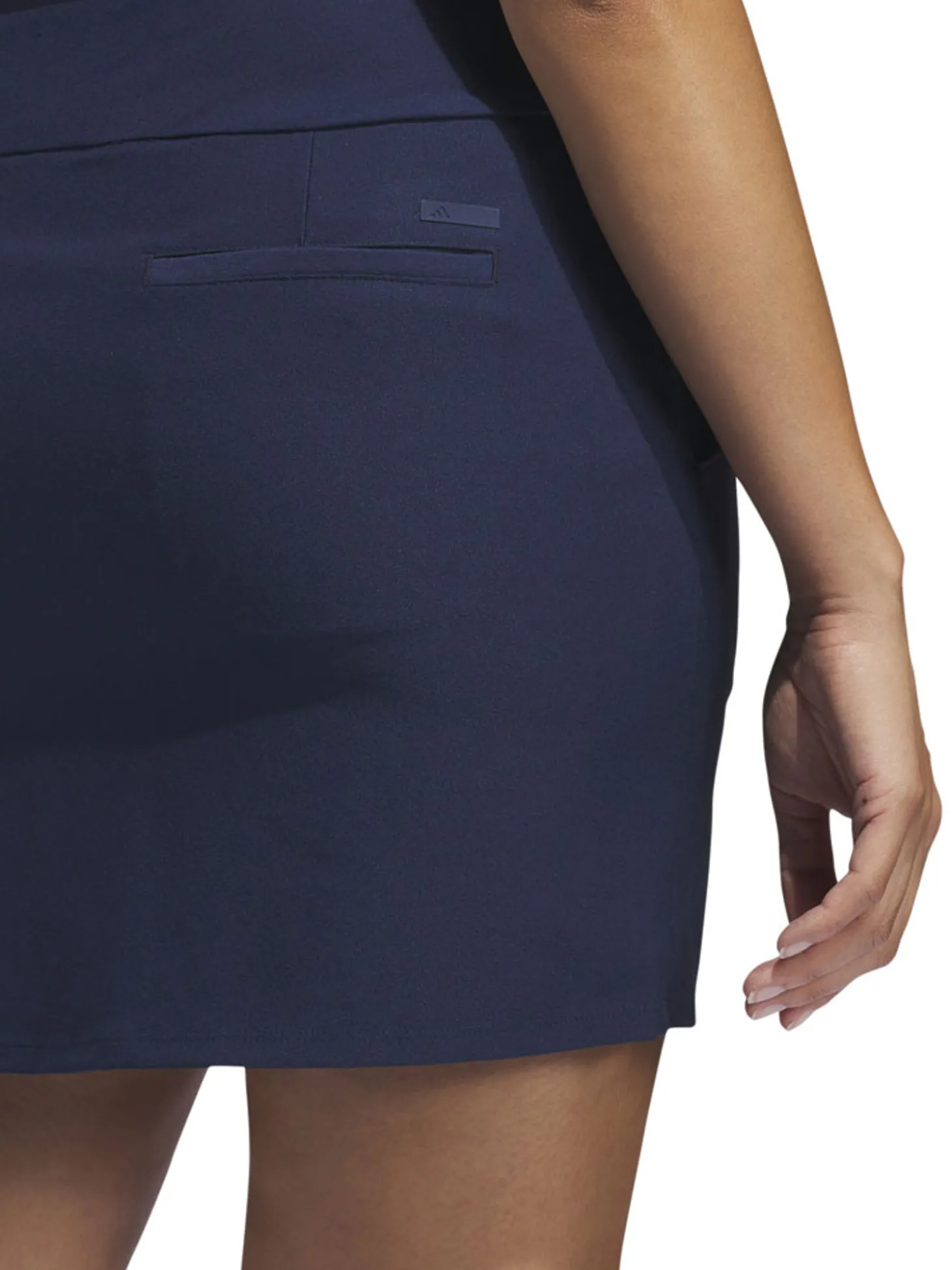The adidas Womens Ultimate365 Skort (Navy) features a stretchy power-mesh waist and built-in under shorts make for unmatched comfort to bend, twist and move on the course.