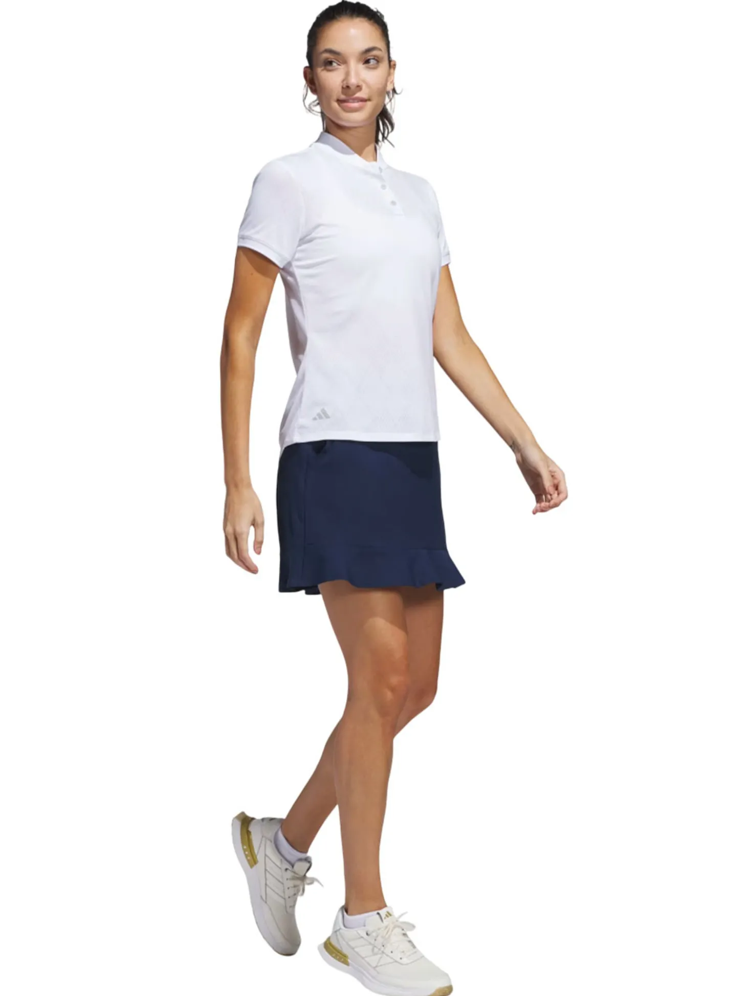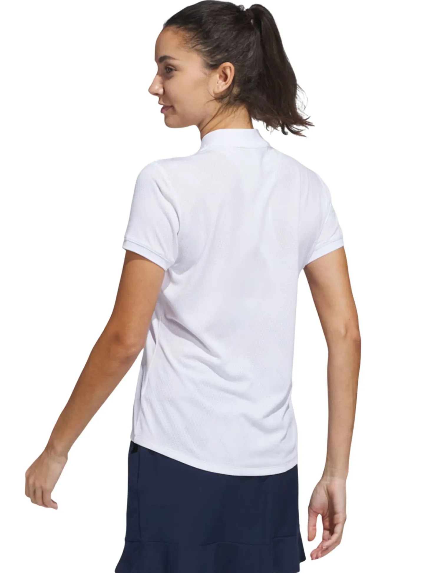 The adidas Womens Ultimate365 Diamond Jacquard Polo Shirt (White) helps you play your best. Stretchy jacquard supports your follow-through on every swing, while modern styling keeps your look on point from course to clubhouse.