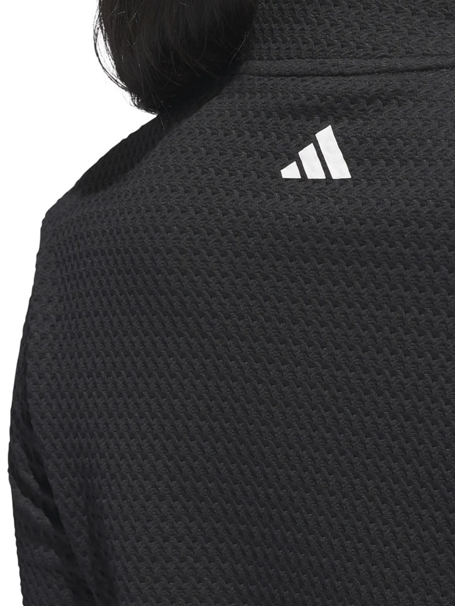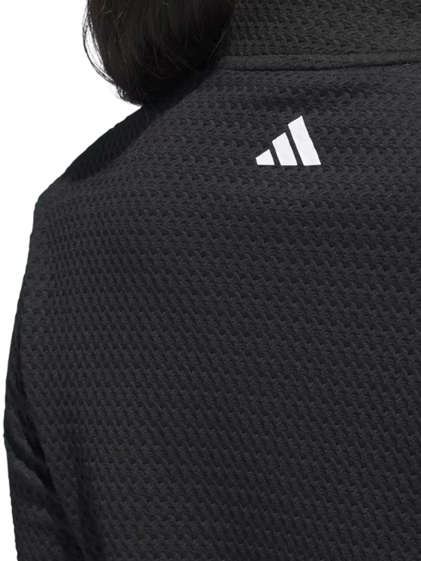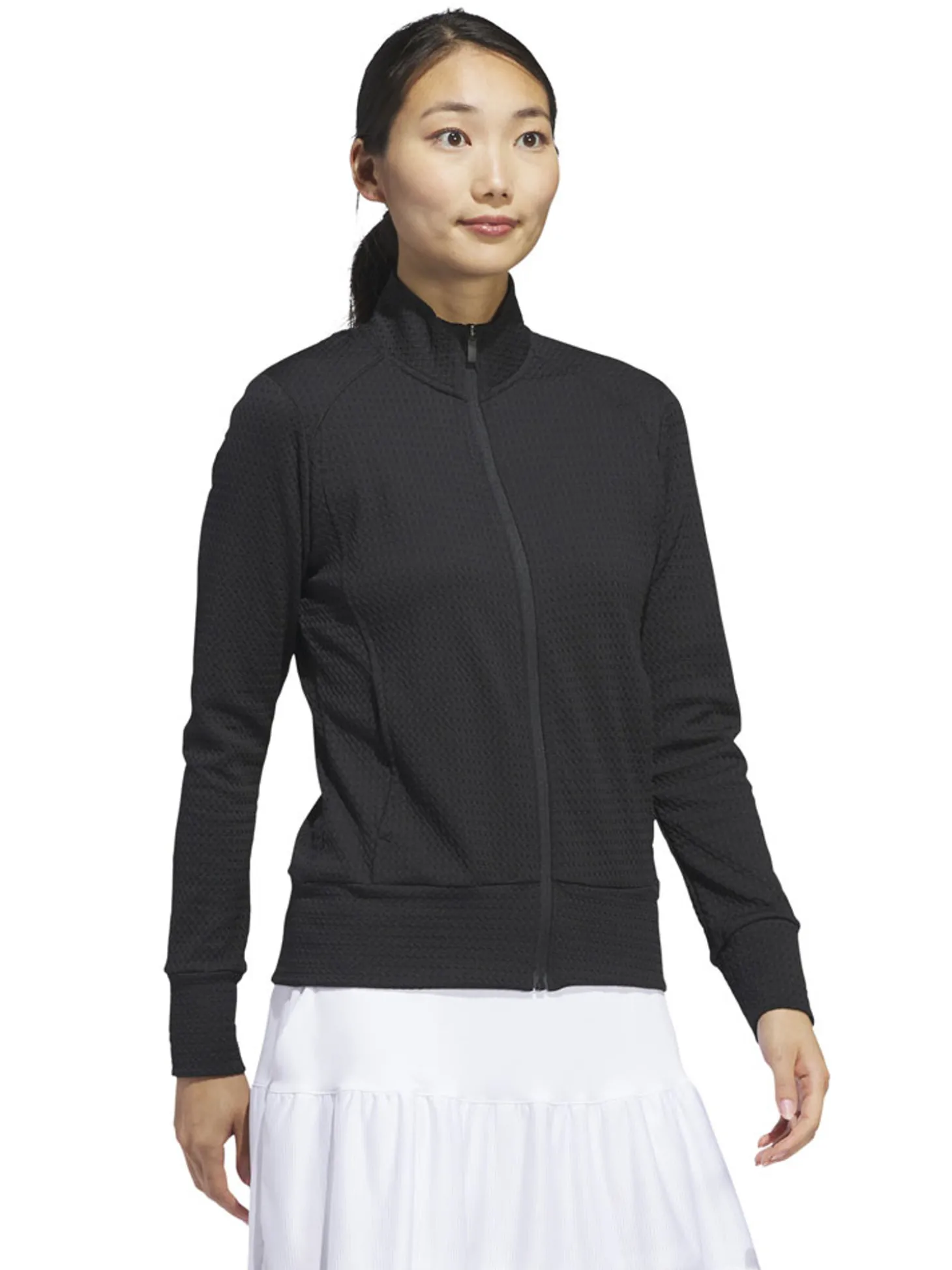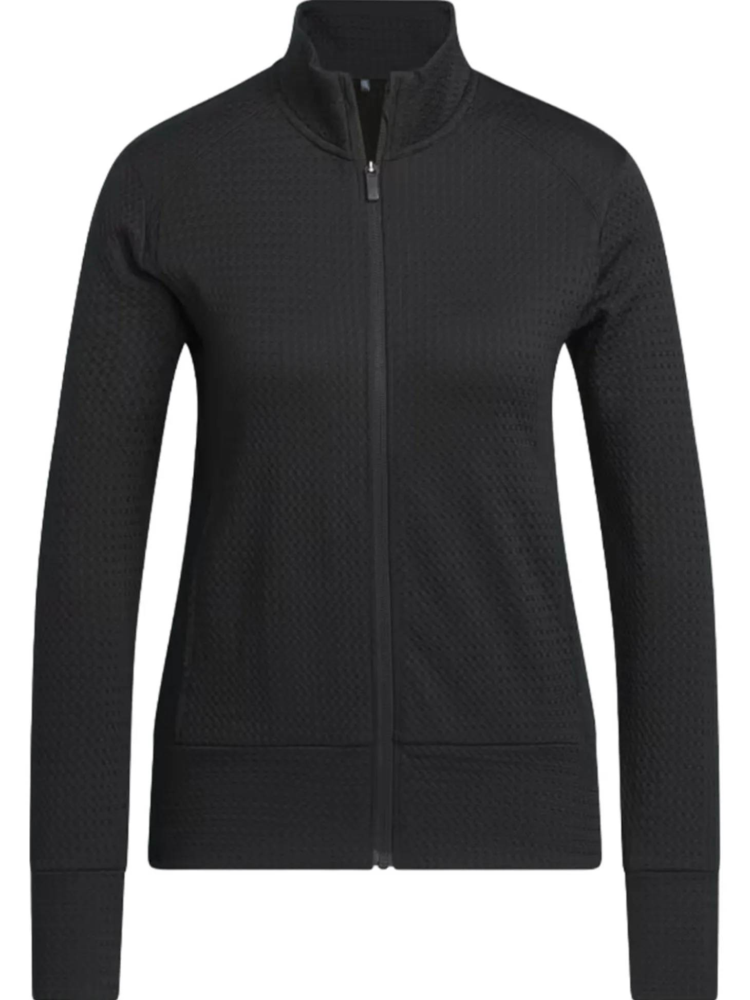 The adidas Womens Ultimate365 Texture Jacket (Black) features waffle-knit panels for breathability and zip pockets to stash your essentials. Whether teeing off or putting for par, its stretch fabric offers full mobility to play your best.