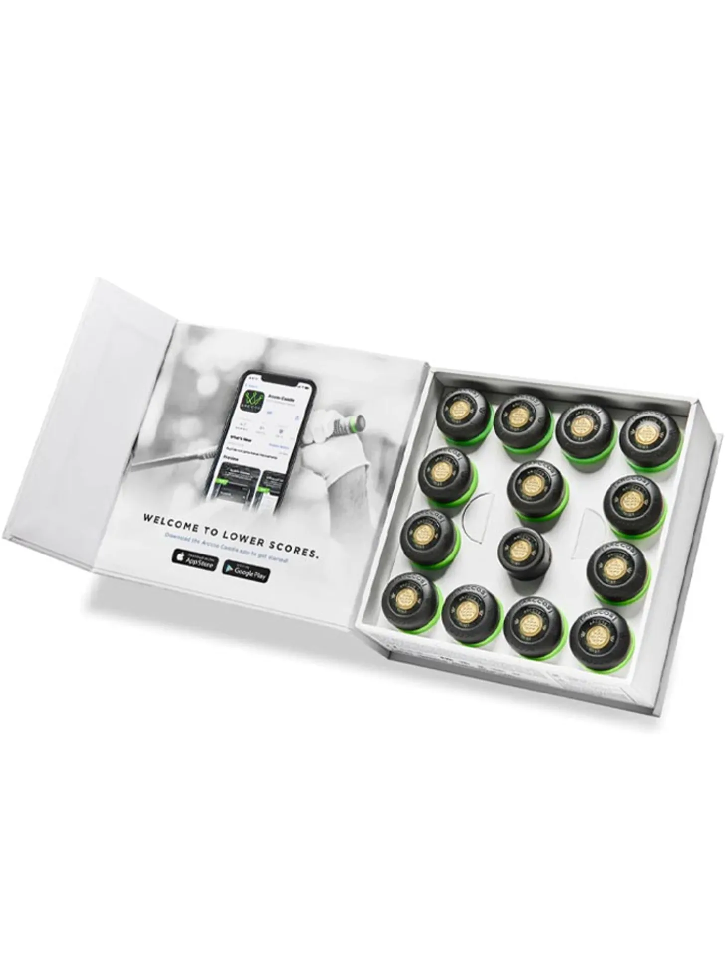 The Arccos Smart Sensors GEN3+ system includes 14 improved sensors (one for every club in your bag). The Smart Sensors seamlessly connect to the Arccos Caddie App and the NEW shot tracking technology, powered by A.I. machine learning, tightly integrates Arccos hardware and software to pinpoint a player’s shots throughout the round, with the system capturing 98% of all tee shots.