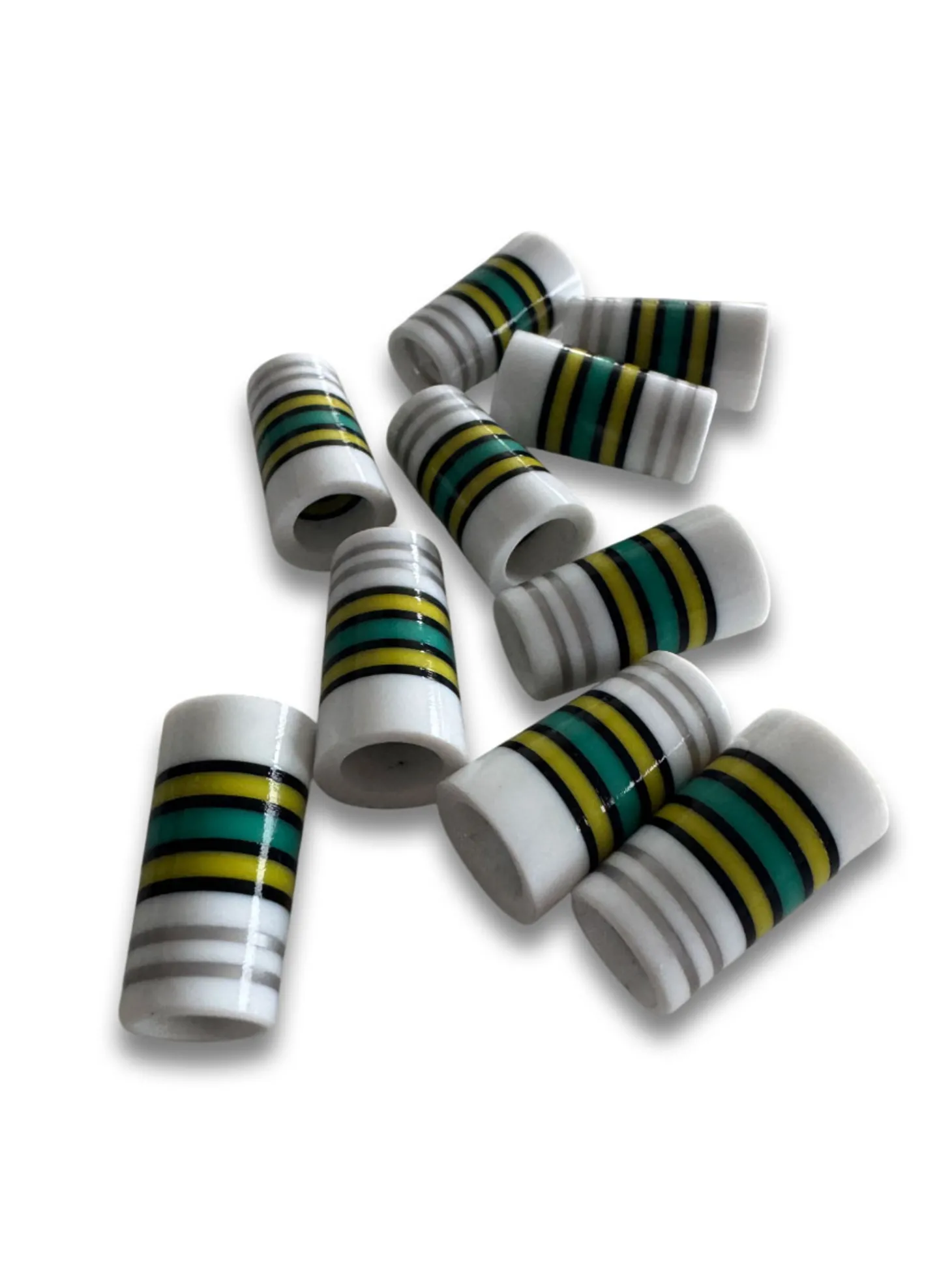 The BB&F Co Ferrule – Genepy (10 Pack) features a white body with a pencil stripe band at the top and smaller metallic rings throughout.