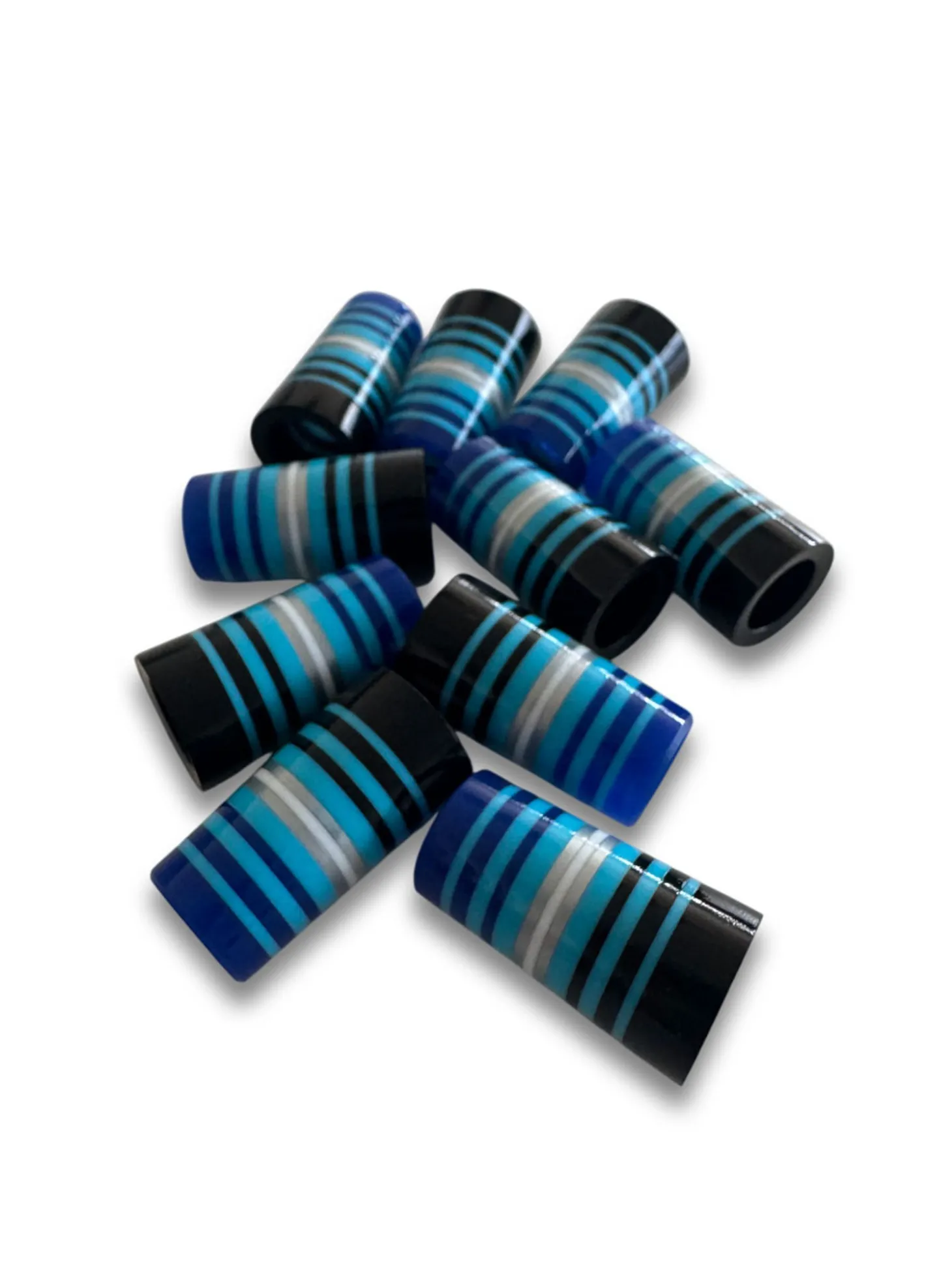 The BB&F Co Ferrule – TT-987 (10 Pack) features a blue body with a black band at the top, darker blue rings throughout and metallic stripe in the middle.