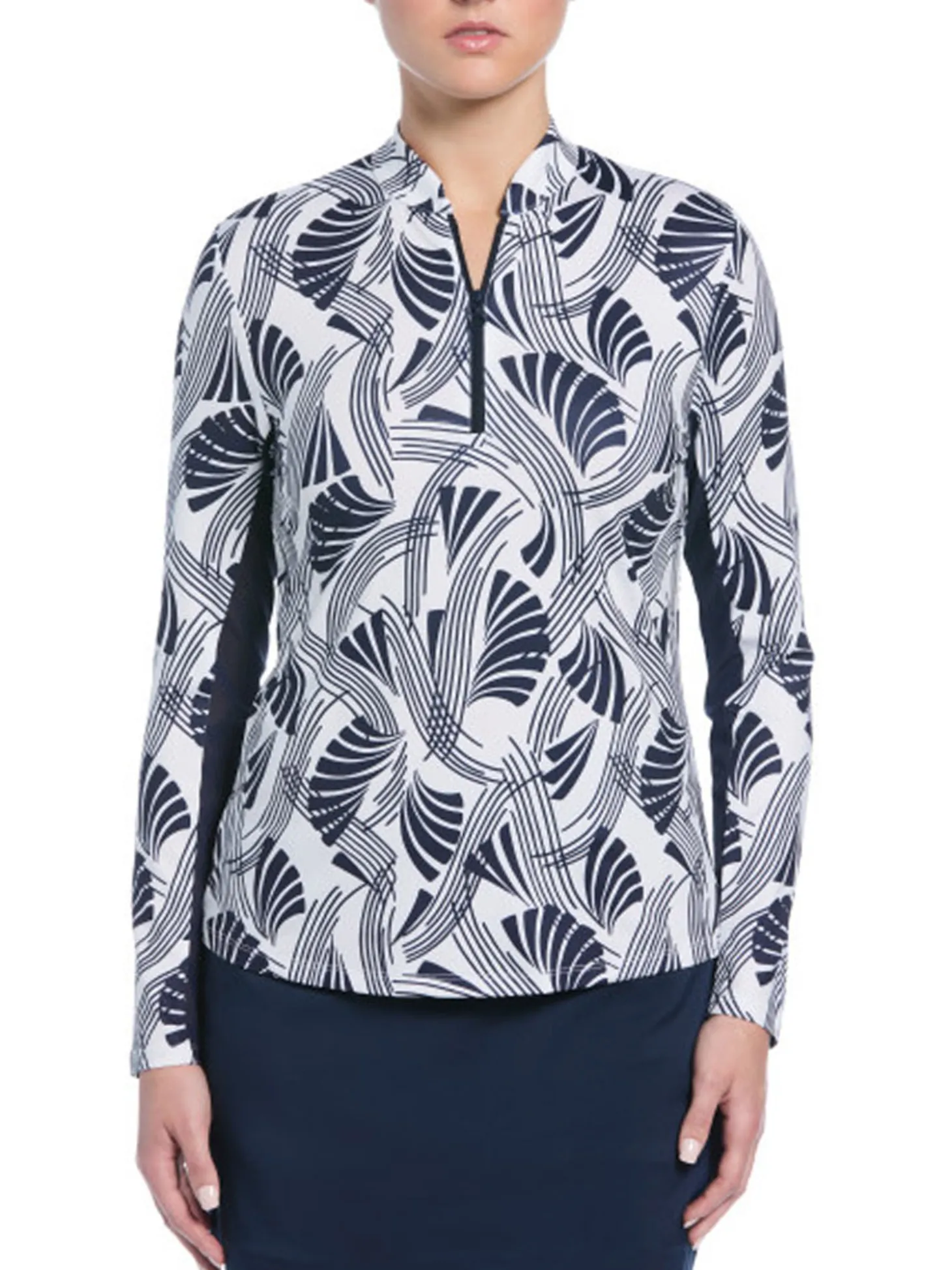 The Ben Hogan Leaf Print Sun Protection Long Sleeve Top (White) is designed with eye-catching patterns and moisture-wicking fabric to blend standout style with unbeatable performance.