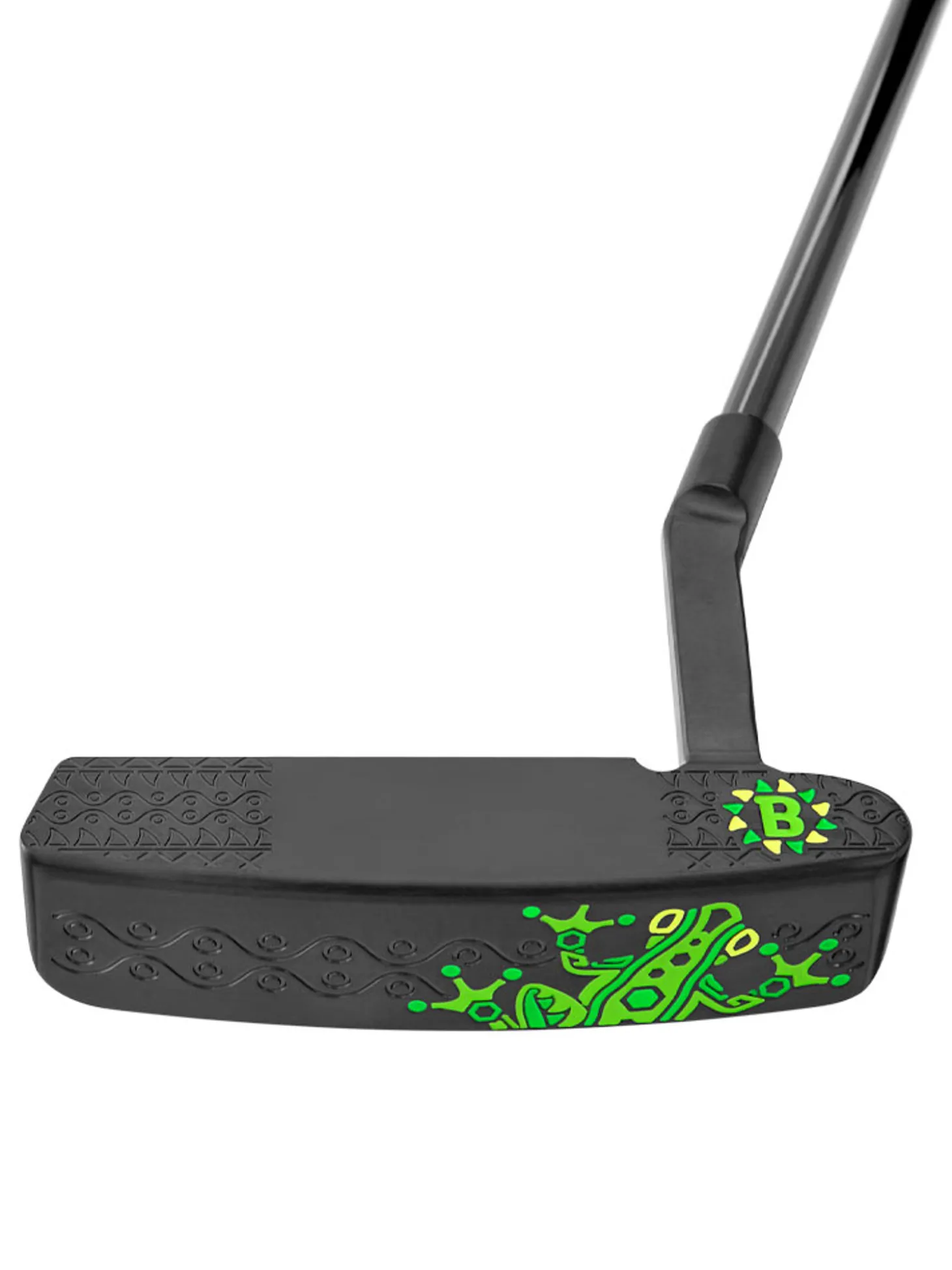 The Bettinardi BB1 Tiki Limited Edition 2025 Putter starts off the golfing season right. This precision-milled BB1 offers 1/2 toe hang and comes complete with a black and neon green Lamkin Deep Etched Smooth Pistol grip and a custom Tribal Tree Frog magnetic headcover.