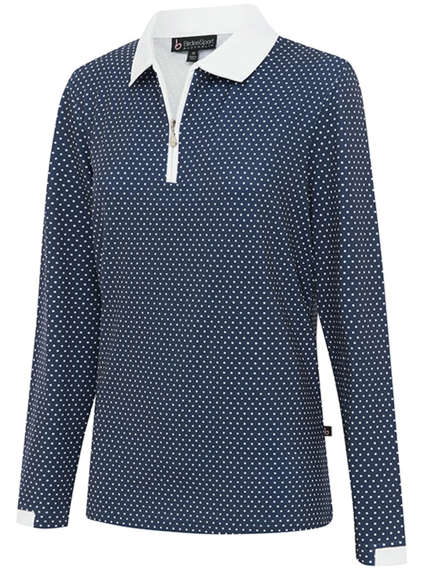 The Birdee Sport Women’s Cosmic Ambrose Long Sleeve Top (Navy) is designed with an all-over polka dot print and standout style with unbeatable performance.