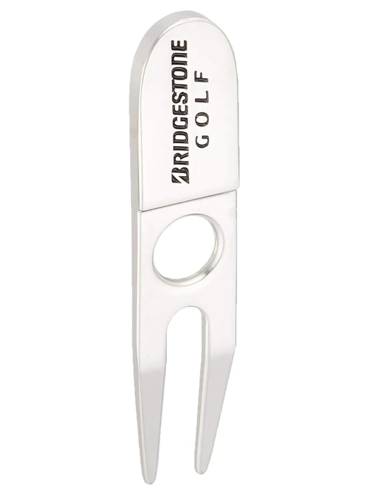 The Bridgestone Golf Divot Tool is designed to quickly and easily repair greens, helping golfers maintain smooth putting surfaces while preserving course conditions.