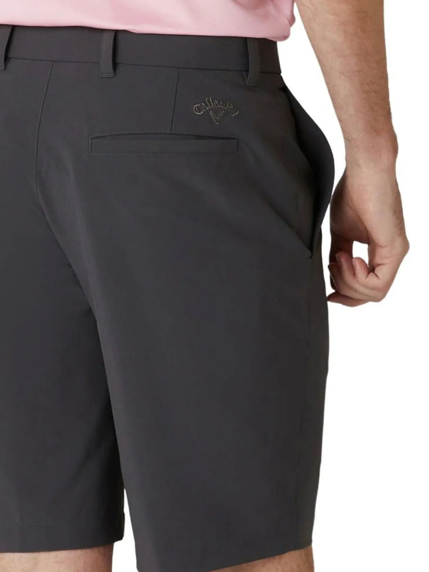 The Callaway Chev Tech Short II (Asphalt) is a lightweight piece that has been designed to blend form and function with its two side slit front pockets, two back welt pockets and stretch gripper waistband with belt loops.
