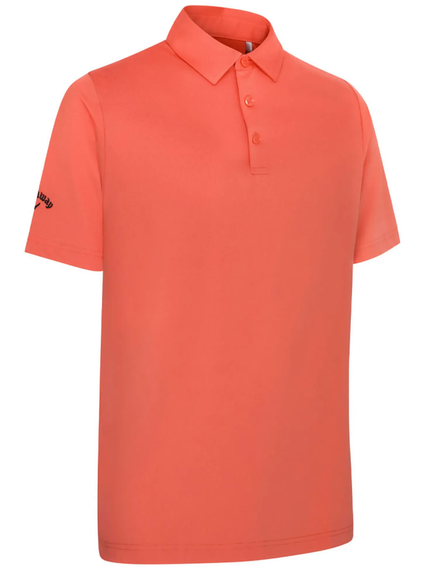 The Callaway SwingTech Solid Polo (Coral) provides style and comfort with its Swing Tech stretch fabric that allows you to move freely for confidence with every swing and moisture-wicking technology keeps you dry.