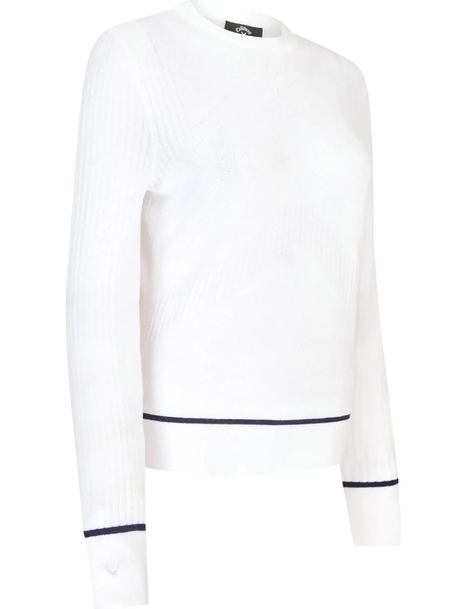 The Callaway Women’s Chev Sweater (White) is a practical addition to your golf clothing collection. Crafted from thermal fabric, this golf pullover helps you feel warm and comfortable as you play. With contrast colour piping and a stitched chevron pattern, this golf sweater has a classic sporty look you can wear after the game, too.