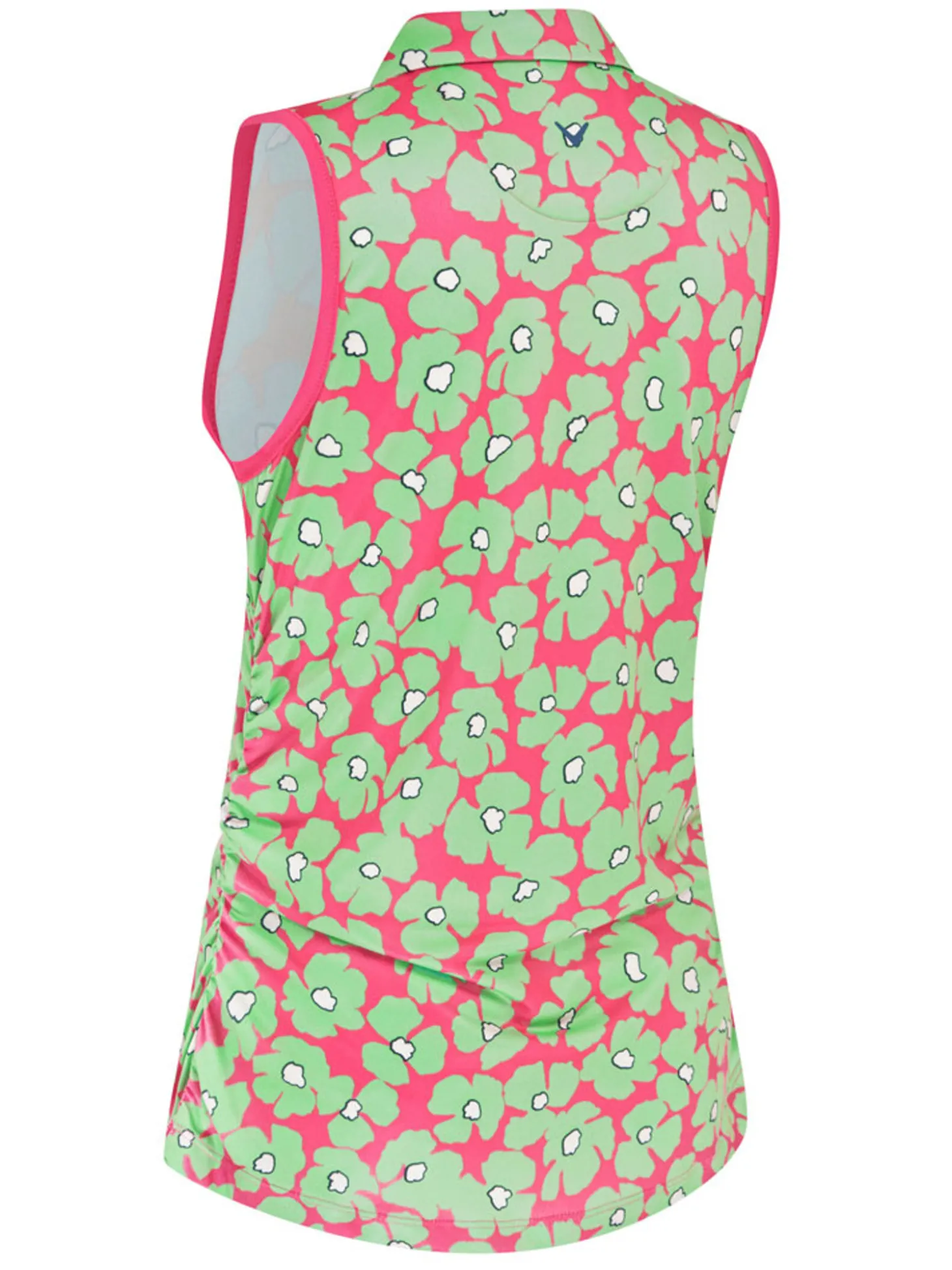 The Callaway Women’s Floral Sleeveless Polo (Pink) is a practical and stylish choice for sunny days on the course. Innovative stretch technology helps ensure smooth swings, while the striking floral print gives your look a stylish flair.