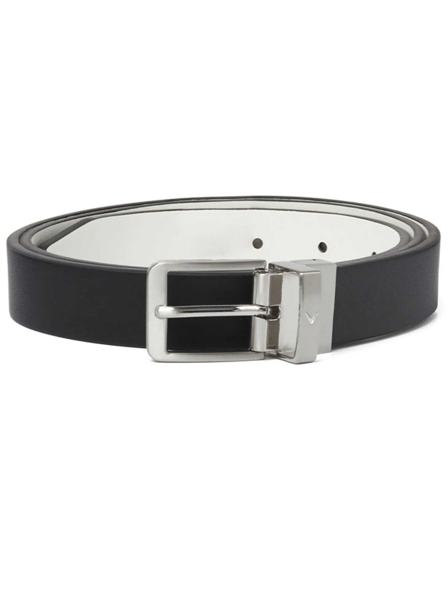The Callaway Women’s Reversible Sleek Belt is crafted from durable split leather, with a reversible design that gives you two versatile looks in one. The ladies’ belt is finished with a classic prong buckle with a debossed chevron logo on the loop.