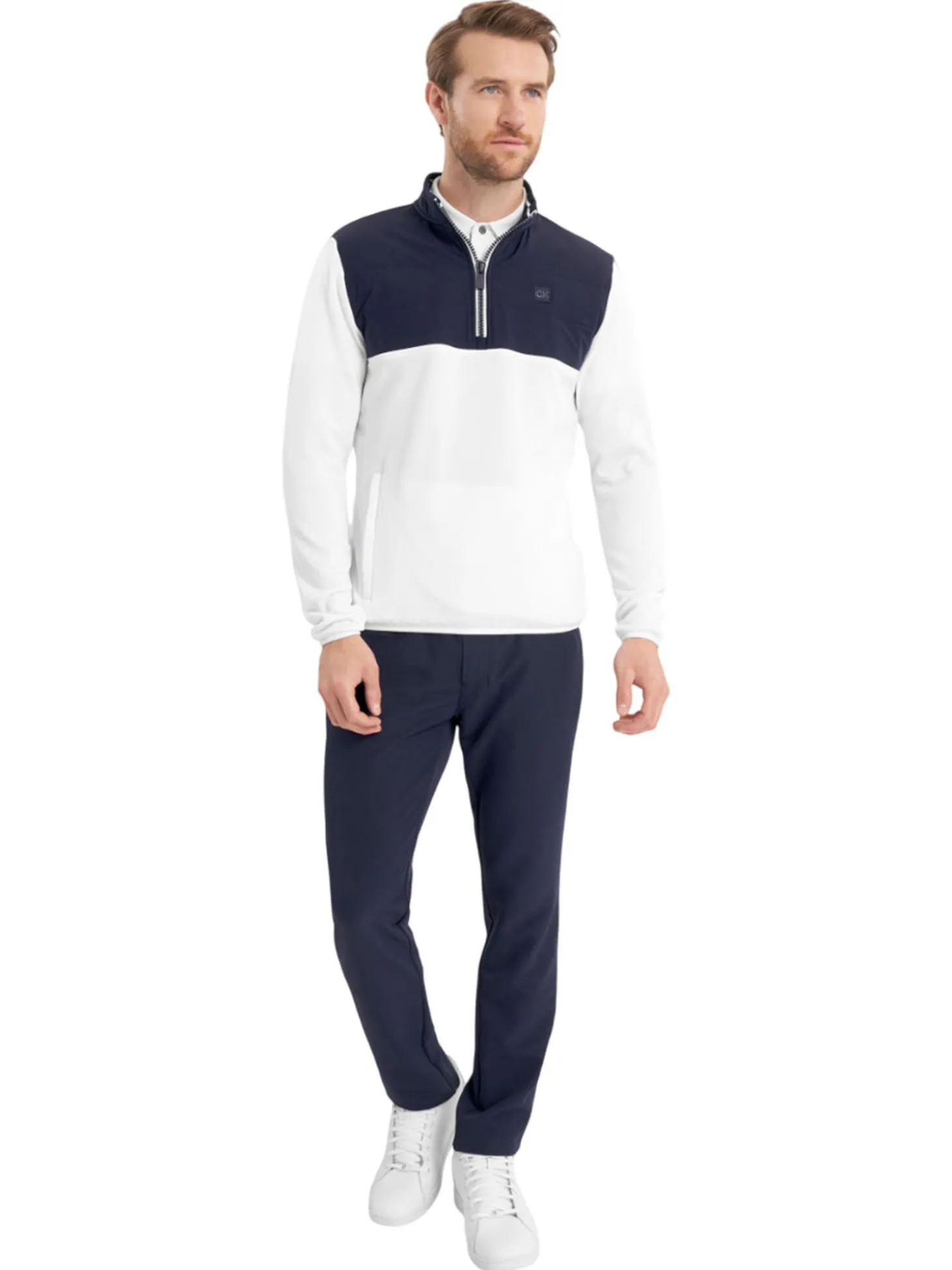 The Calvin Klein Atlantic Hybrid Half Zip (White) packs a punch against the ever-changing weather from the Chill Force product series—a striking transitional piece for your wardrobe this season. Featuring a woven padded front panel with attractive honeycomb pressing detail, this jacket will provide the warmth you need to play your best game. A contrasting colour stripe highlights the inside knitted collar for a pleasing colour pop.