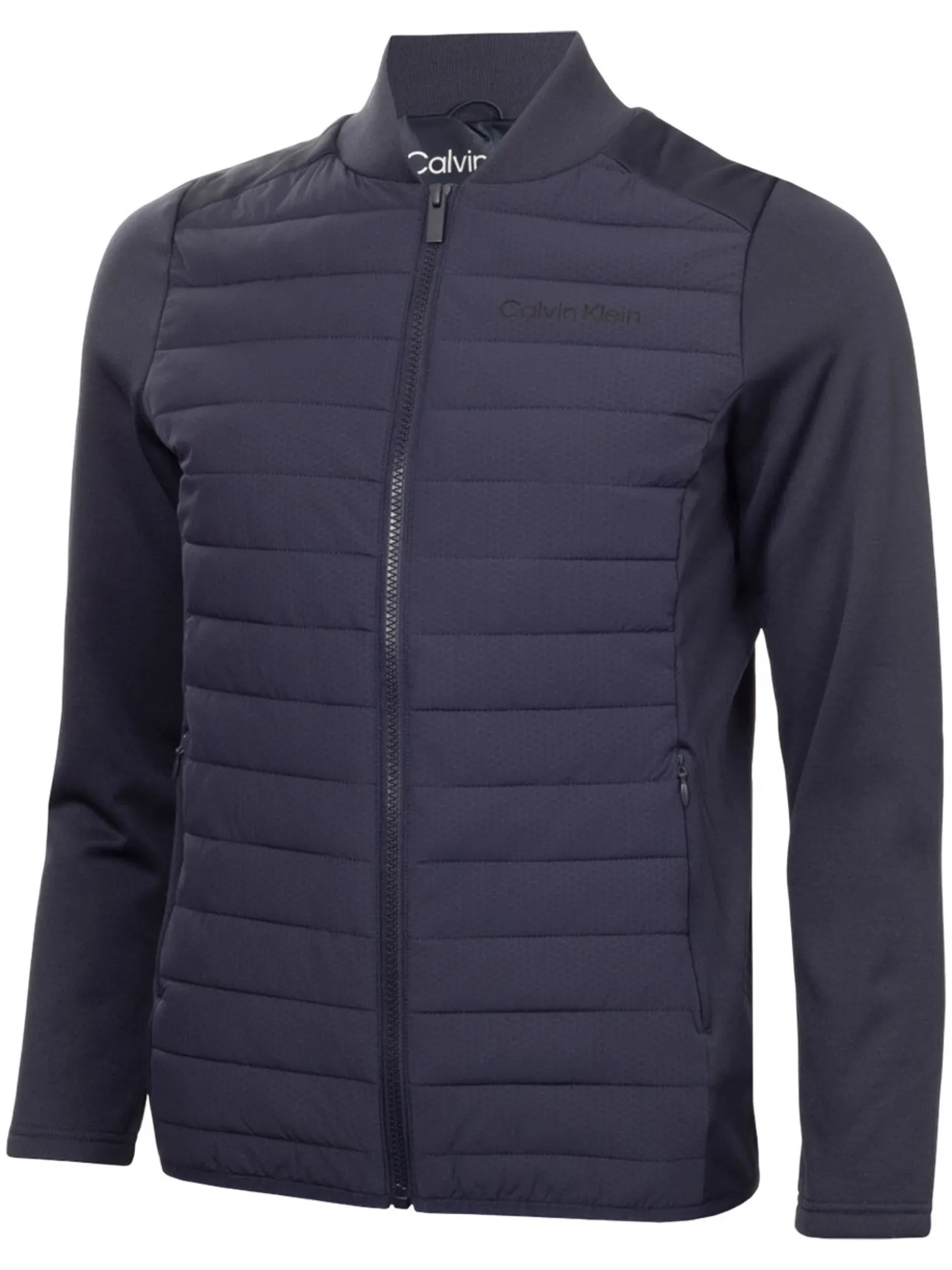 - Exposed front zip with CK-branded zip puller