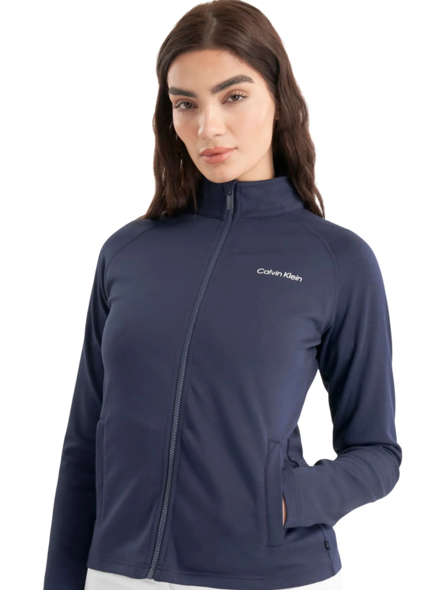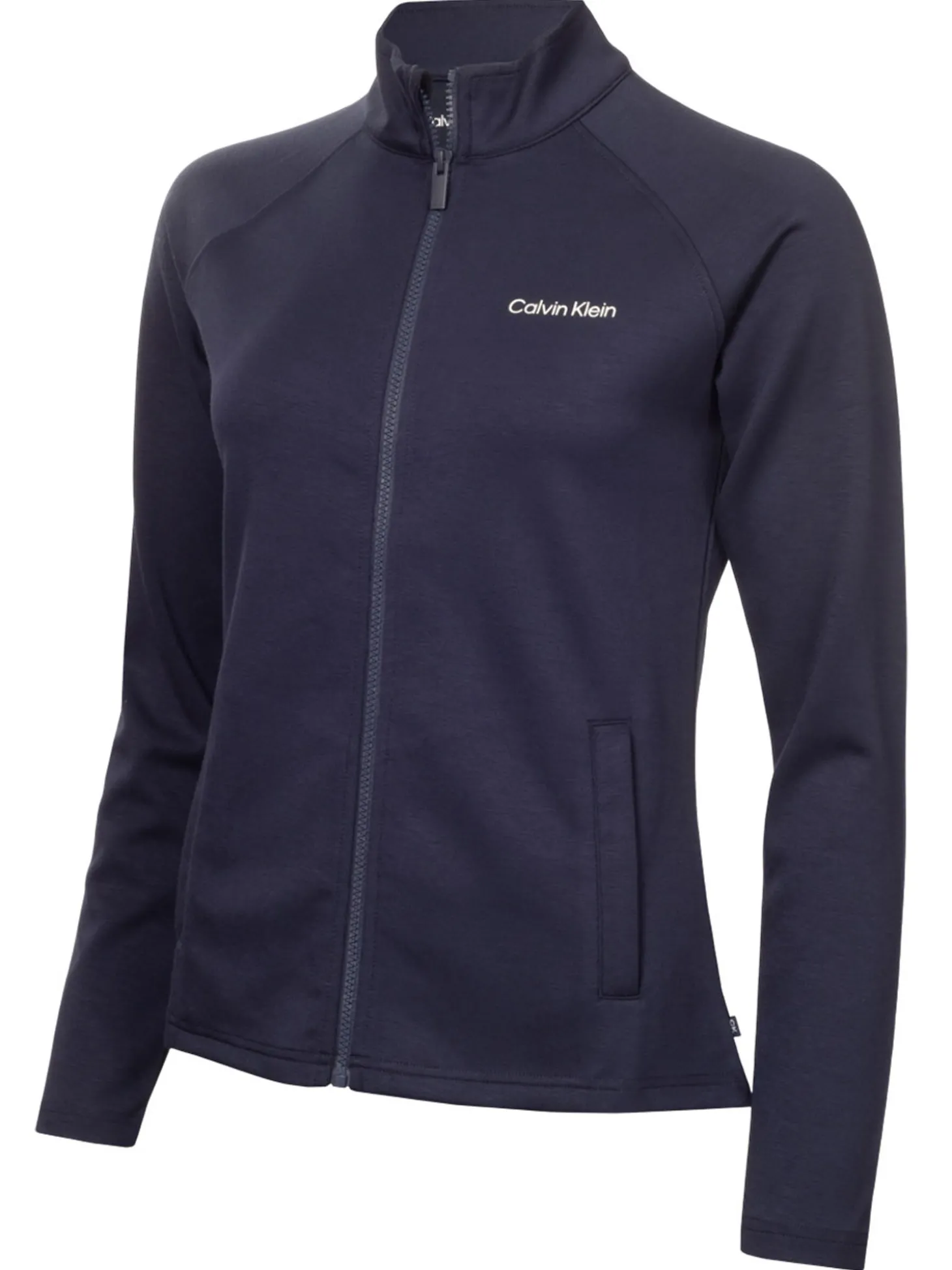 The Calvin Klein Womens Blanco Full Zip Jacket (Navy) is the perfect solution for when the temperature dips. Sleek and sporty, it not only looks the part, but it allows you to keep playing at your optimum thanks to the lightweight and extreme stretch performance fabric. Raglan sleeve design for unrestricted swing motion.