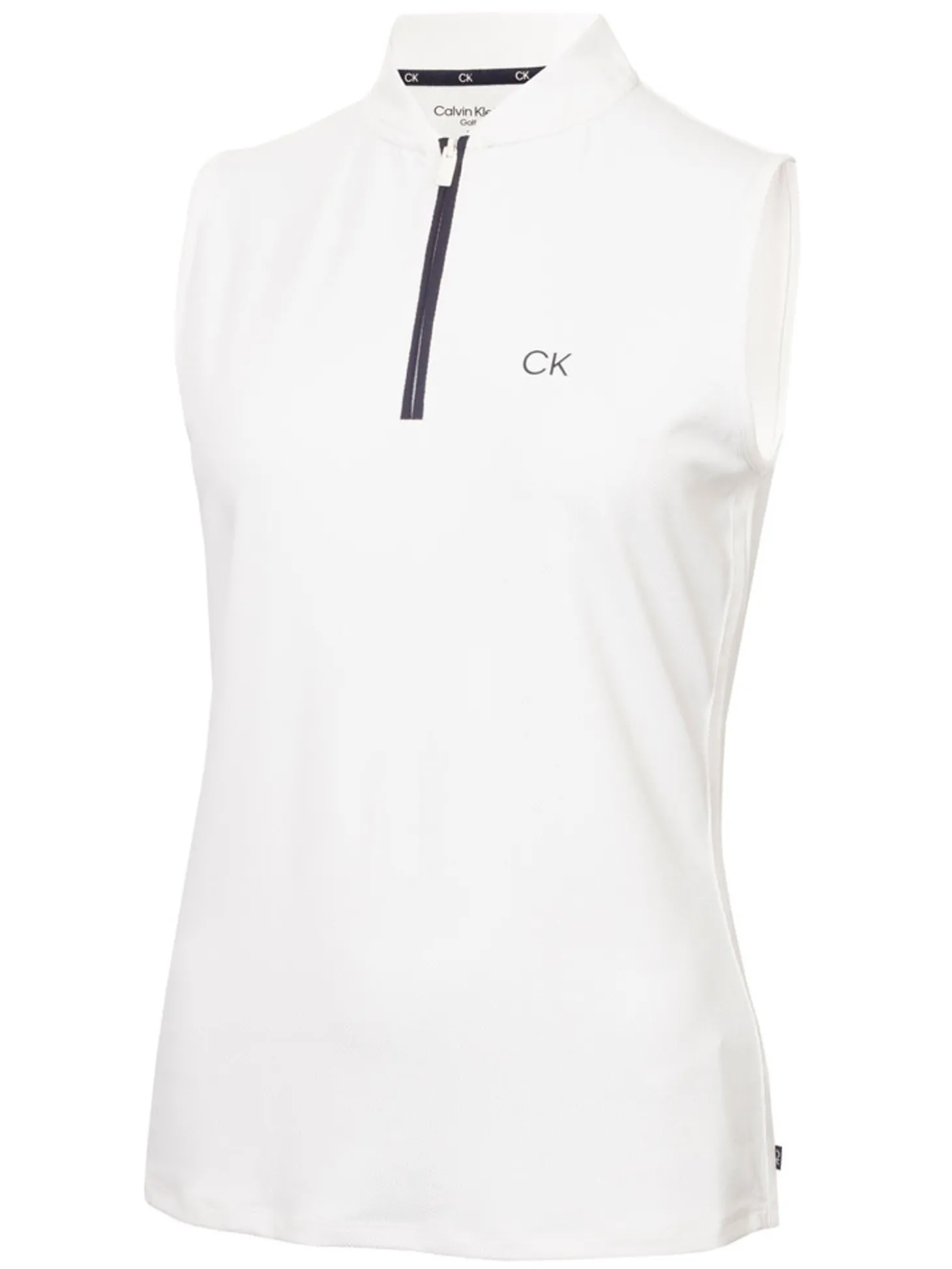 The Calvin Klein Tattler Sleeveless Mock Neck Top (White) lets you enjoy its sporty design highlights.