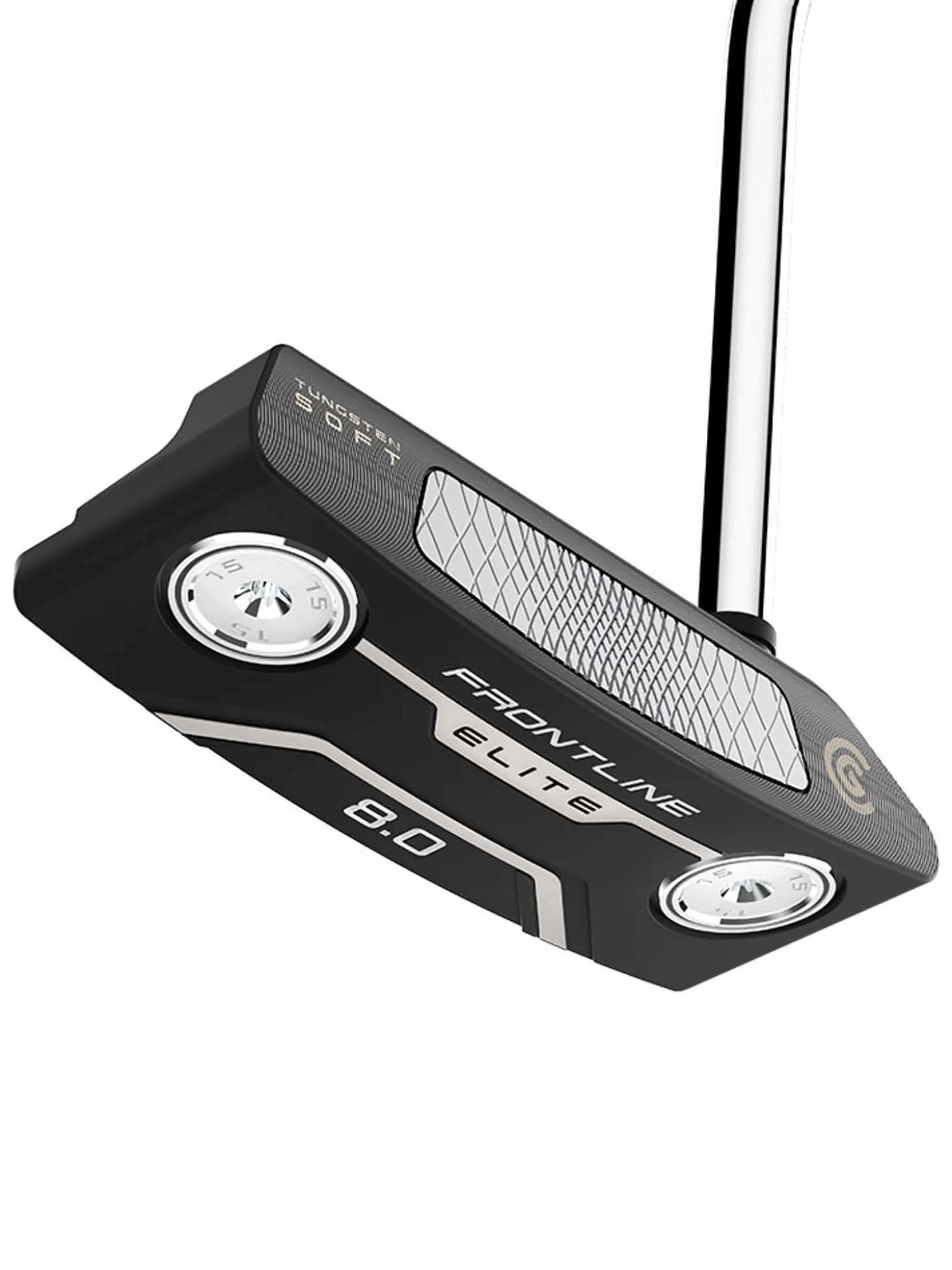 The Cleveland Frontline Elite 8.0 Putter features a more traditional shape and profile, 8.0 uses a slightly enlarged blade design paired with a slant neck hosel, best suited for a straight stroke. With a one-of-a-kind Tungsten SOFT face, model-specific sole/counterbalance weighting, and our 2135 Technology, everything is designed to help you hit straighter putts with consistent distance and incredible feel.
