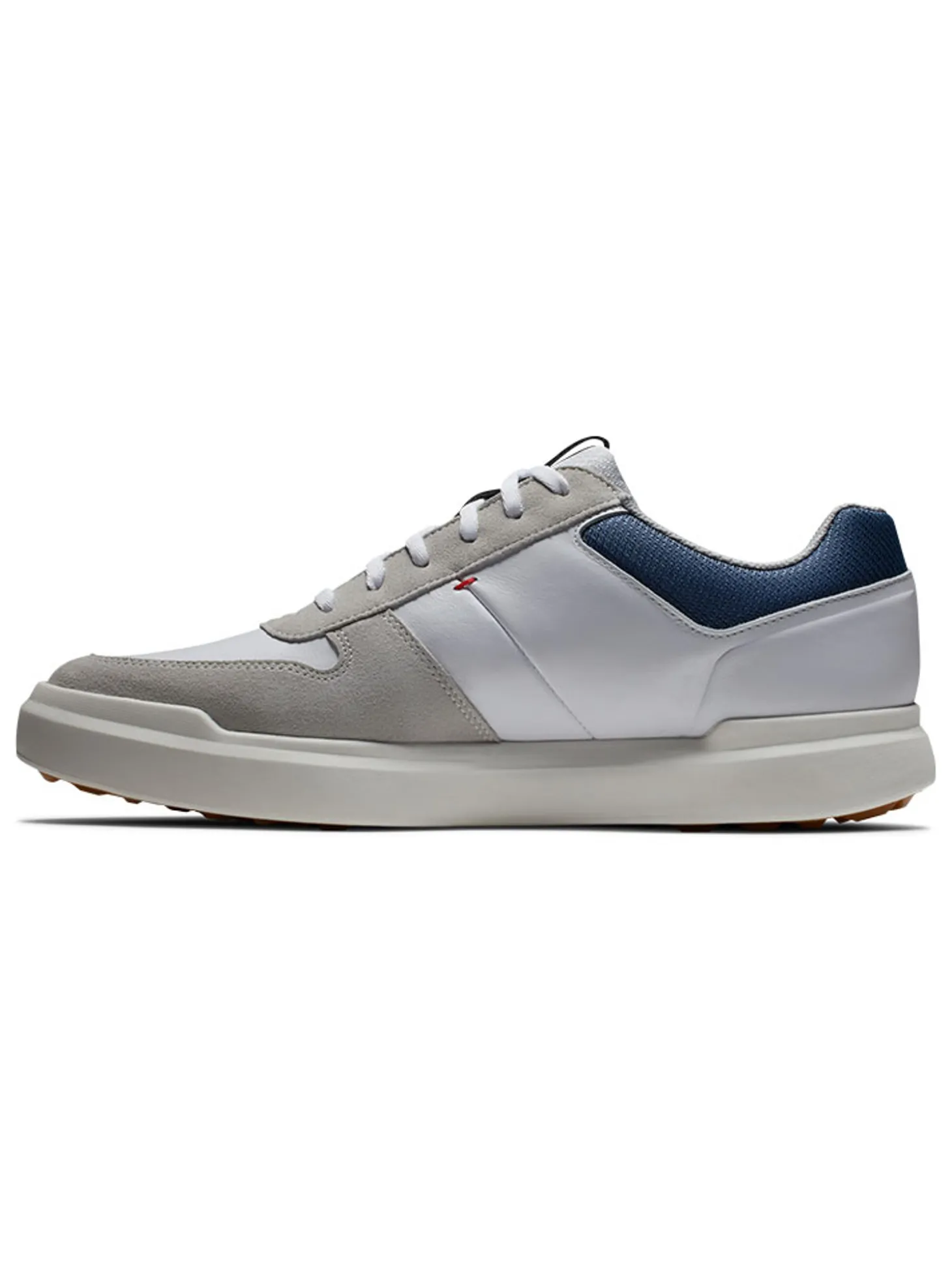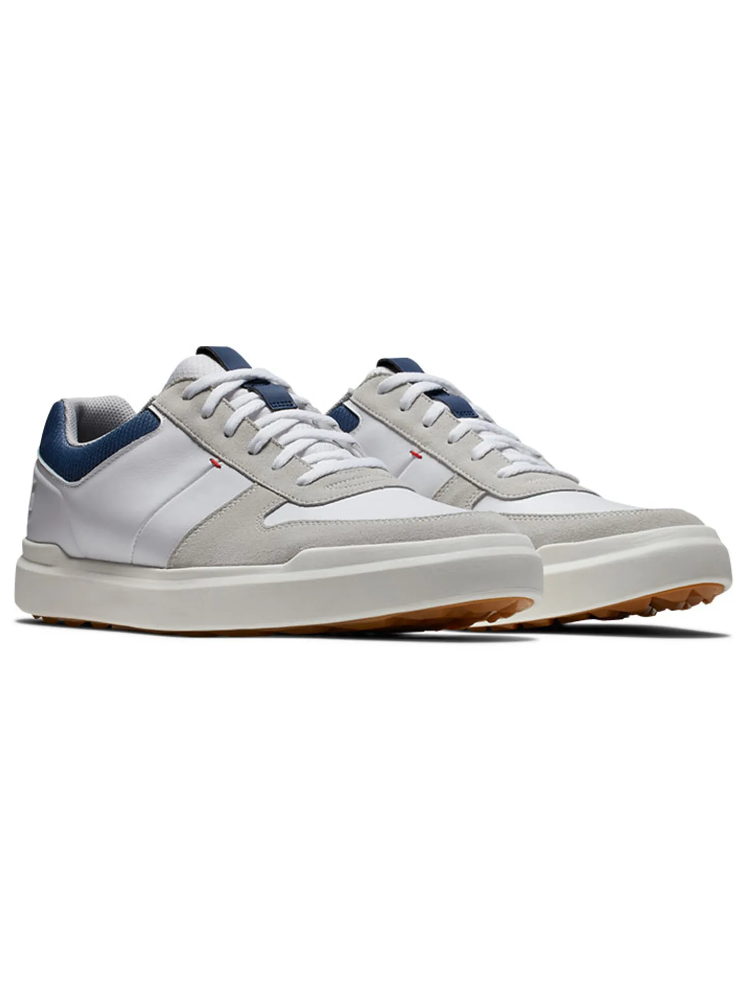 The FootJoy Contour Casual Golf Shoes (White) utilise a spikeless outsole, super-soft premium leathers, lightweight underfoot comfort, waterproof protection, industry-leading size options and a world-renowned fit.