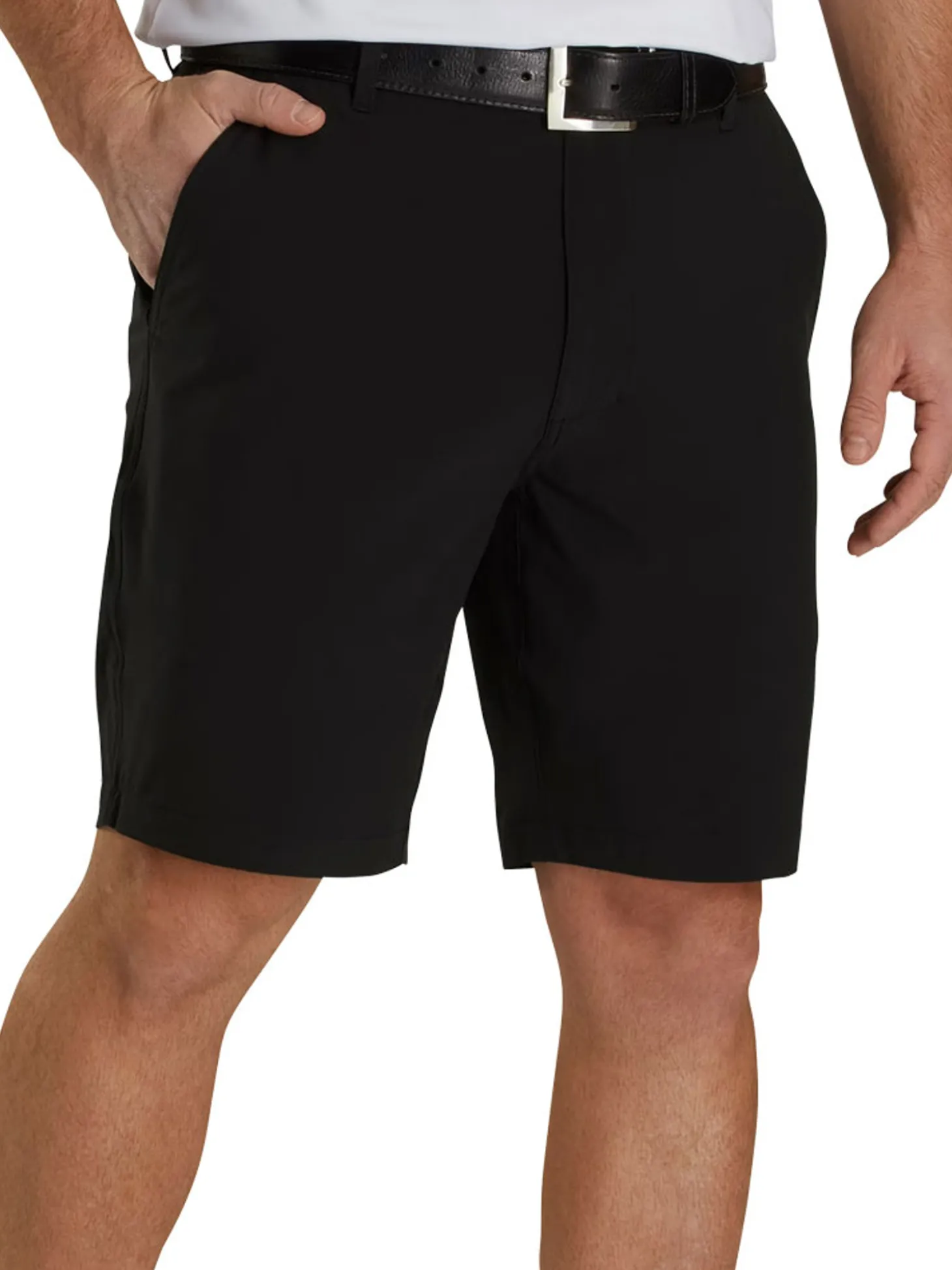 FJ shorts feature flat front styling and two side pockets with generous depth for golf. - FOUR-WAY STRETCH
