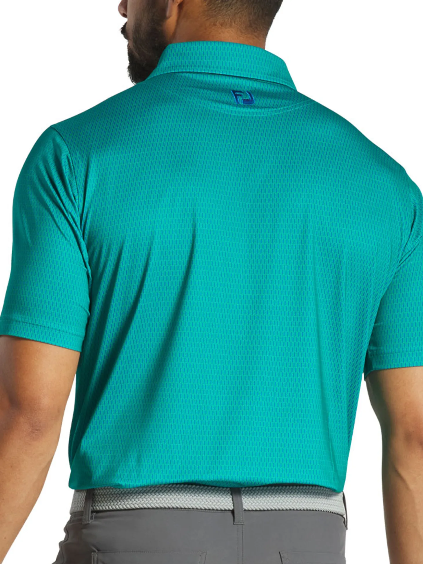 The FootJoy Skyscraper Print Lisle Polo Shirt Athletic Fit (Emerald) is crafted for superior comfort and a clean, classic look that never goes out of style.