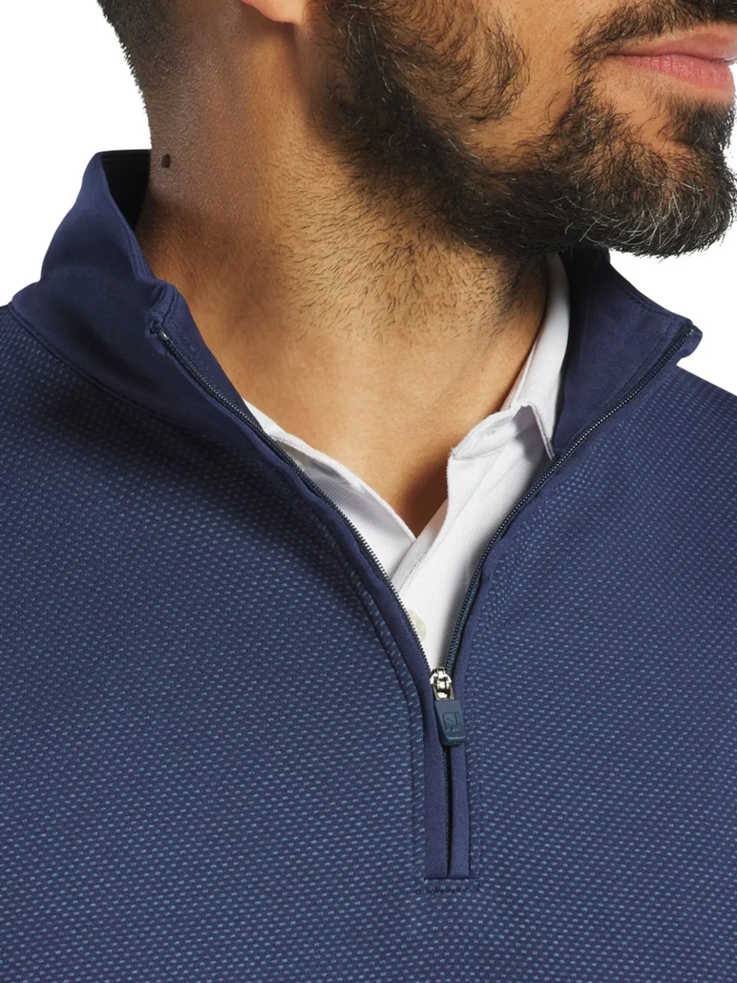 The FootJoy Tonal Block Pullover (Navy) is a versatile piece that allows the player to adapt to changing weather conditions. The four-way stretch shell allows a free range of motion throughout the golf swing.