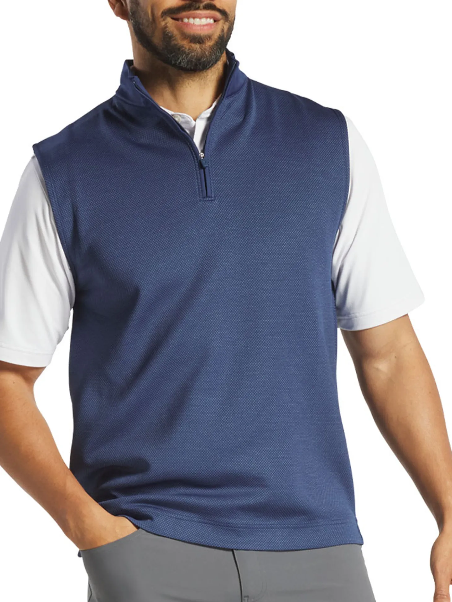 The FootJoy Tonal Block Vest (Navy) is a versatile piece that allows the player to adapt to changing weather conditions. The four-way stretch shell allows a free range of motion throughout the golf swing.