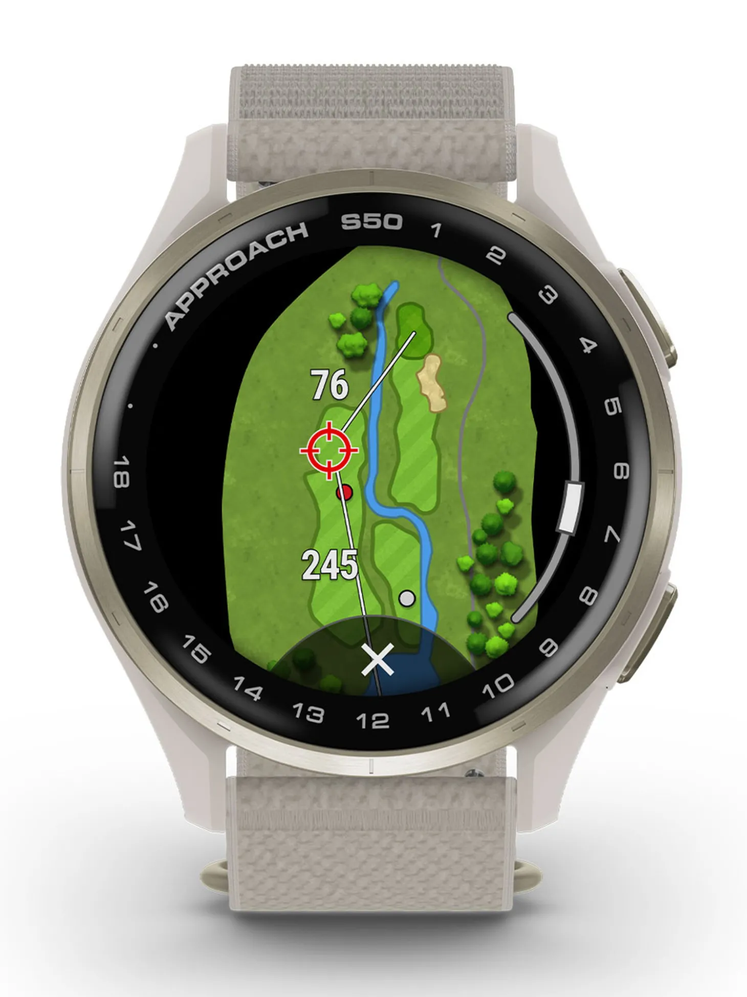 The stunning 1.2-inch AMOLED touchscreen display makes it easy to see key yardages to the green, hazards, and layups on the colourful course maps. - PLAN YOUR SHOT