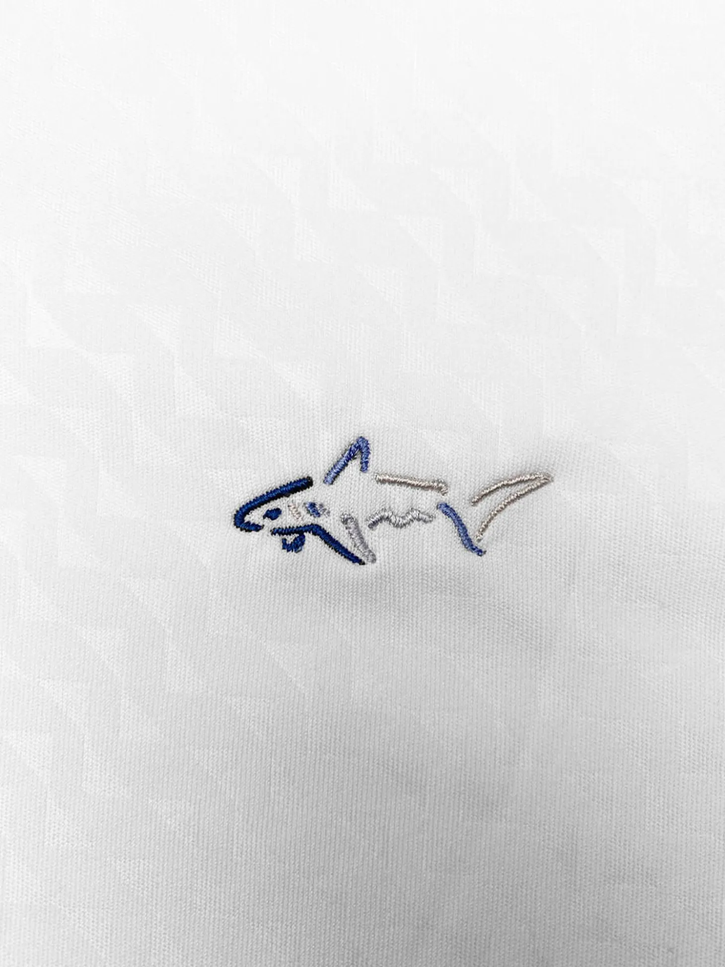 The Greg Norman ML75 Geo Embossed Polo (White) is the perfect blend of performance and style, with its print and fabric, for all-day comfort on and off the course.