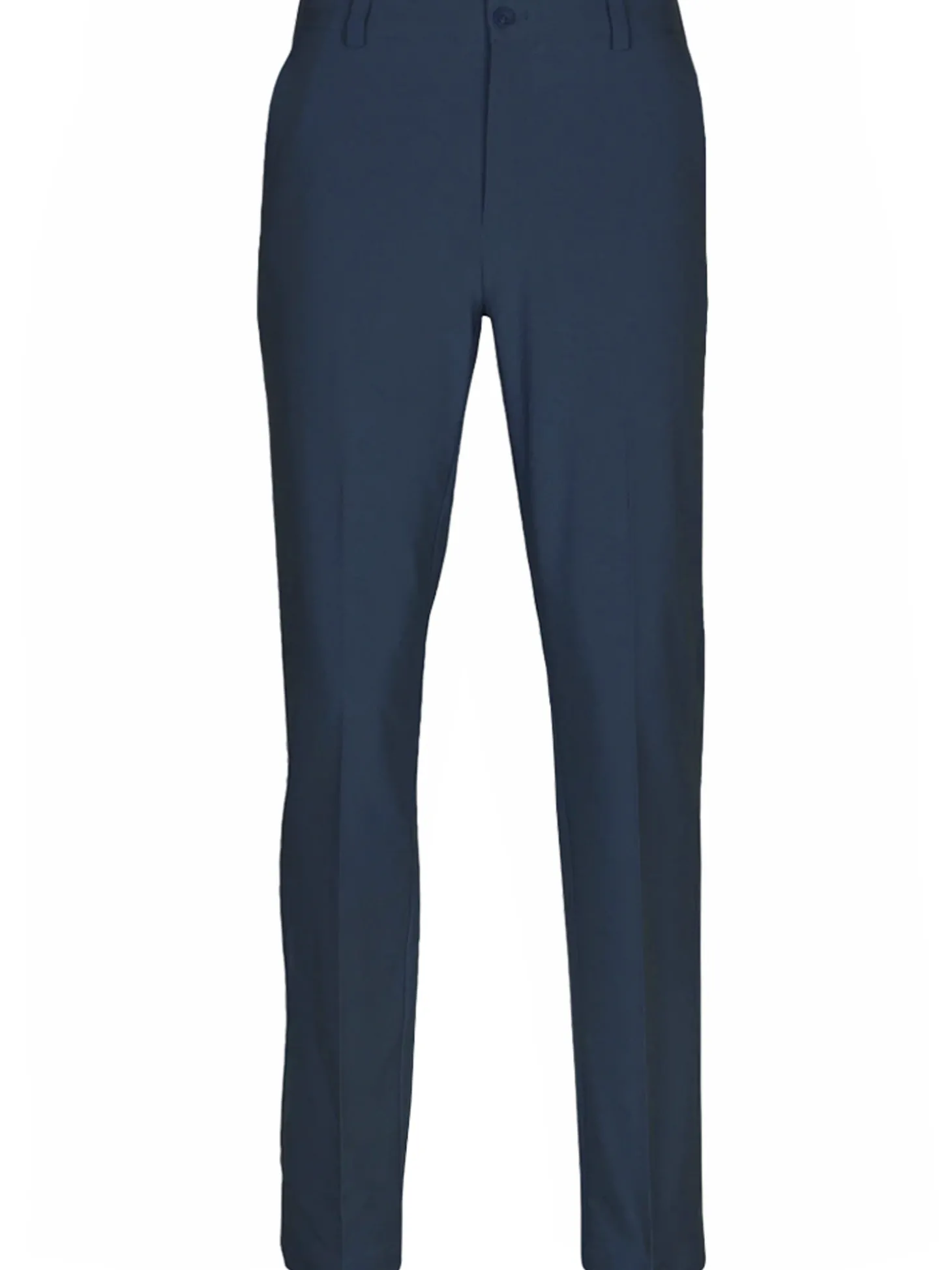 The Greg Norman ML75 Microlux Pant (Navy) features a stretch shirt gripper waistband with the Shark logo that offers a comfort stretch in the waist along with a flat front look.