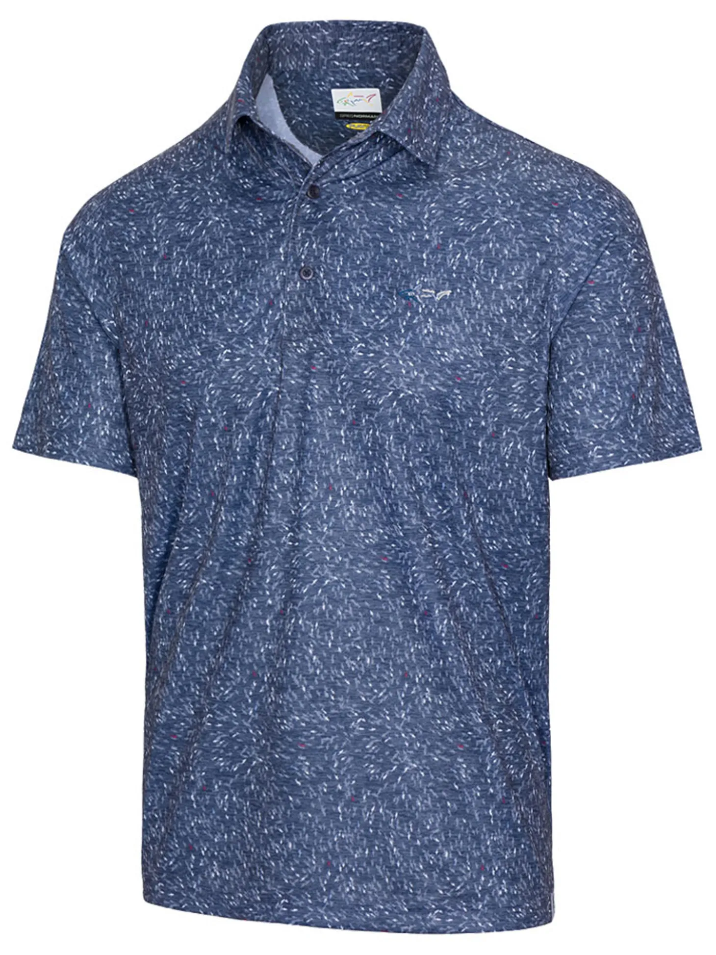 The Greg Norman Shark Frenzy Print Polo (Navy) is designed with an all-over print and finished with a shark logo on the left chest panel.