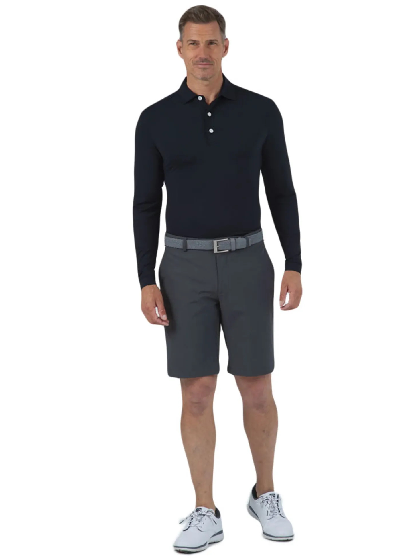 The IBKUL Men’s Long Sleeve Polo (Black) is designed with a solid tone in the brand’s patented iceƒil technology and mesh underarm panels that give you extra style, reach, and breathability. .