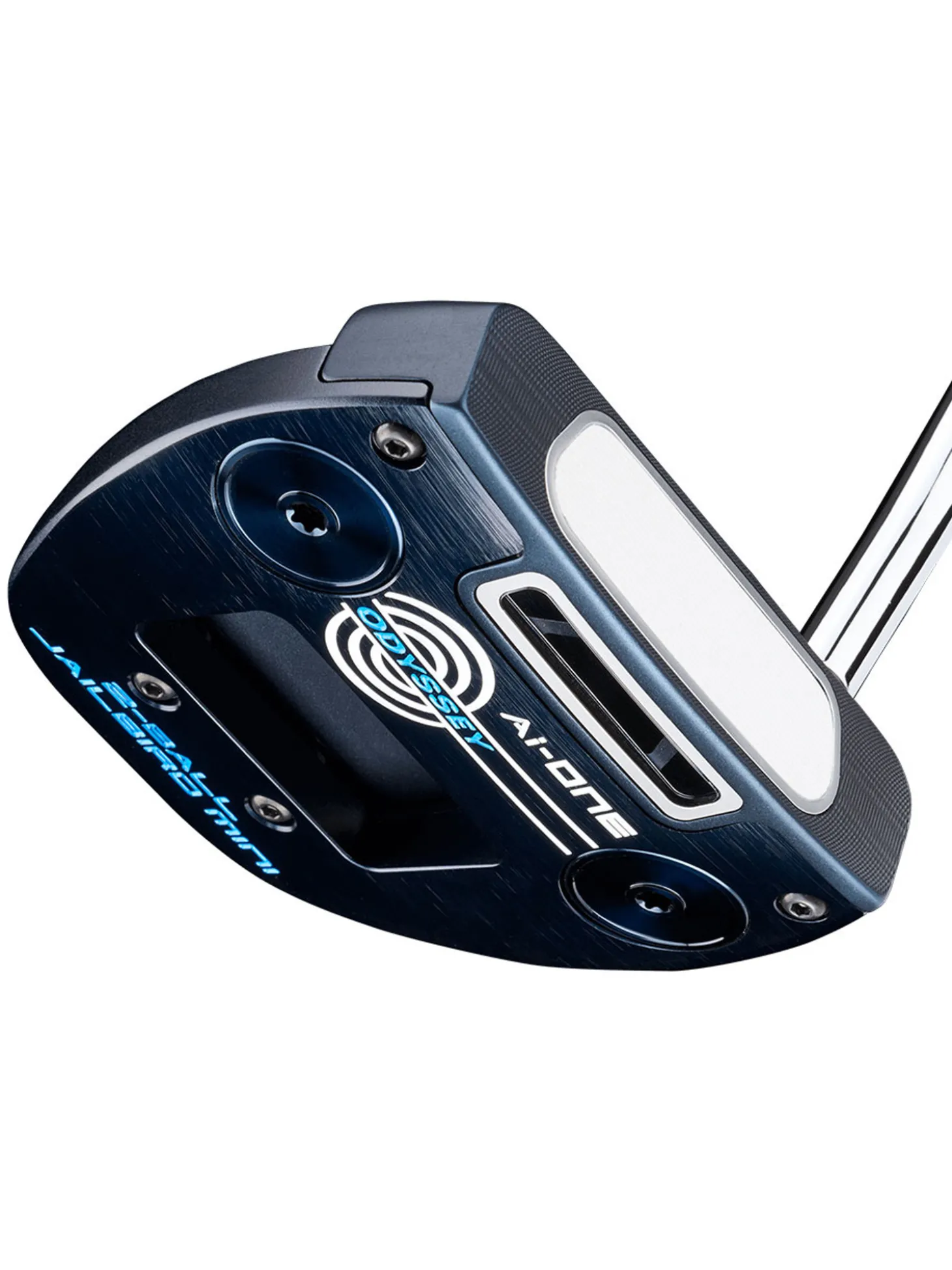 The Odyssey Ai-One Putter (2-Ball Jailbird Mini) features the Ai-One insert, which delivers more consistent ball speeds, even from off-centre hits, leaving putts closer to the hole.