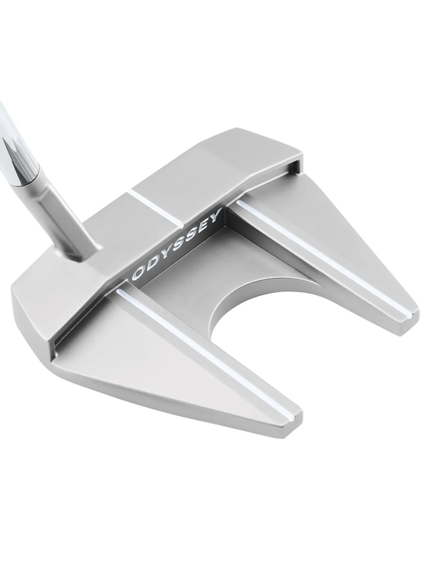 The Odyssey Ai-ONE Silver Putter (7) features their Ai-One insert, which delivers more consistent ball speeds, even from off-centre hits, leaving putts closer to the hole.