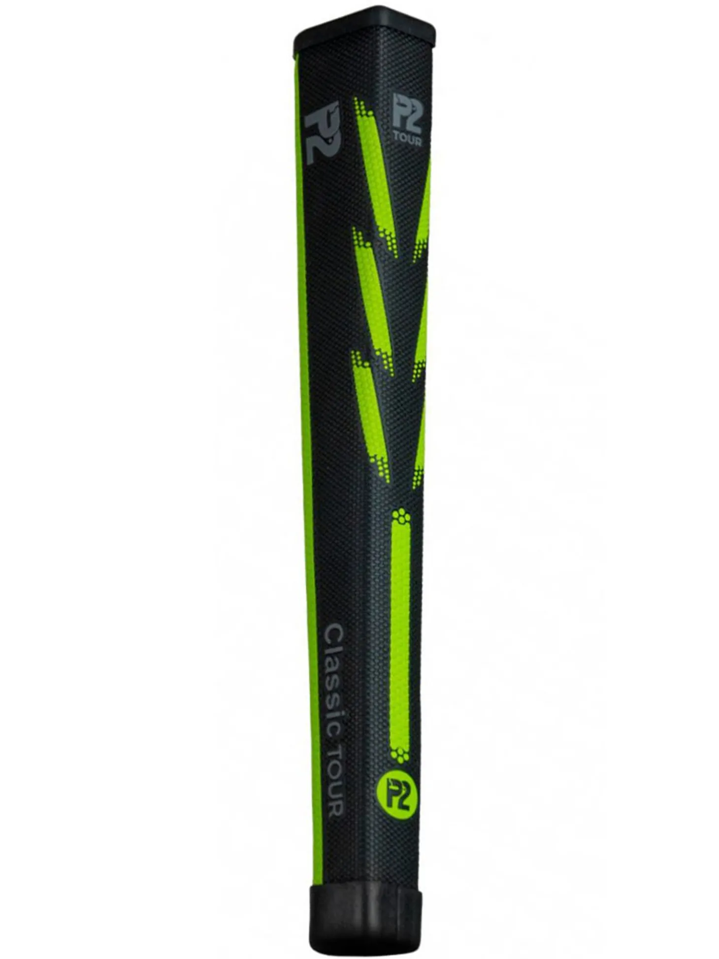 The P2 Classic Tour Putter Grip is an oversize hybrid pistol grip with a gently rounded bottom and flat sides which sits squarely in the palms of your hands and features the patented off-center shaft design.