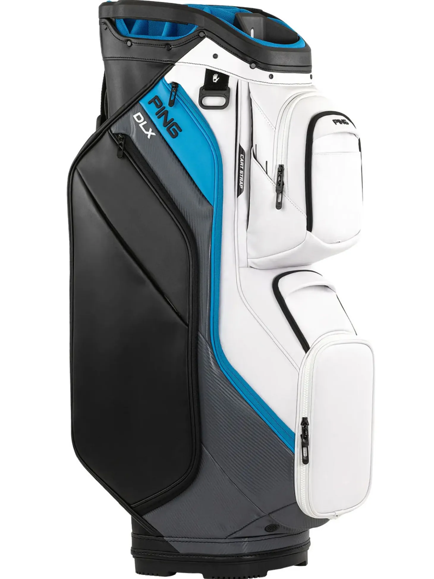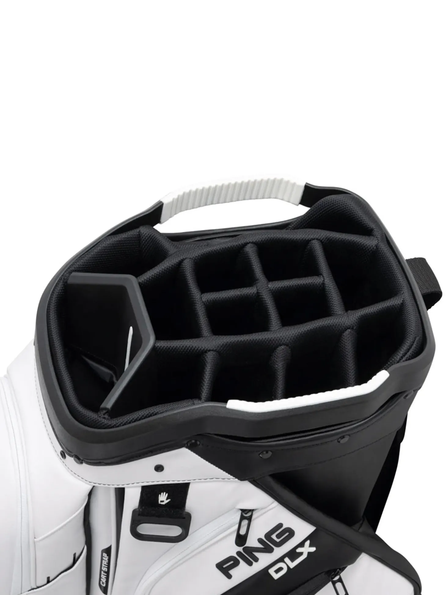 The reconfigured top allows for larger wells, giving clubs individual attention in padded compartments, simplifying club organisation, removal, and replacement. - Cart-Strap Channel
