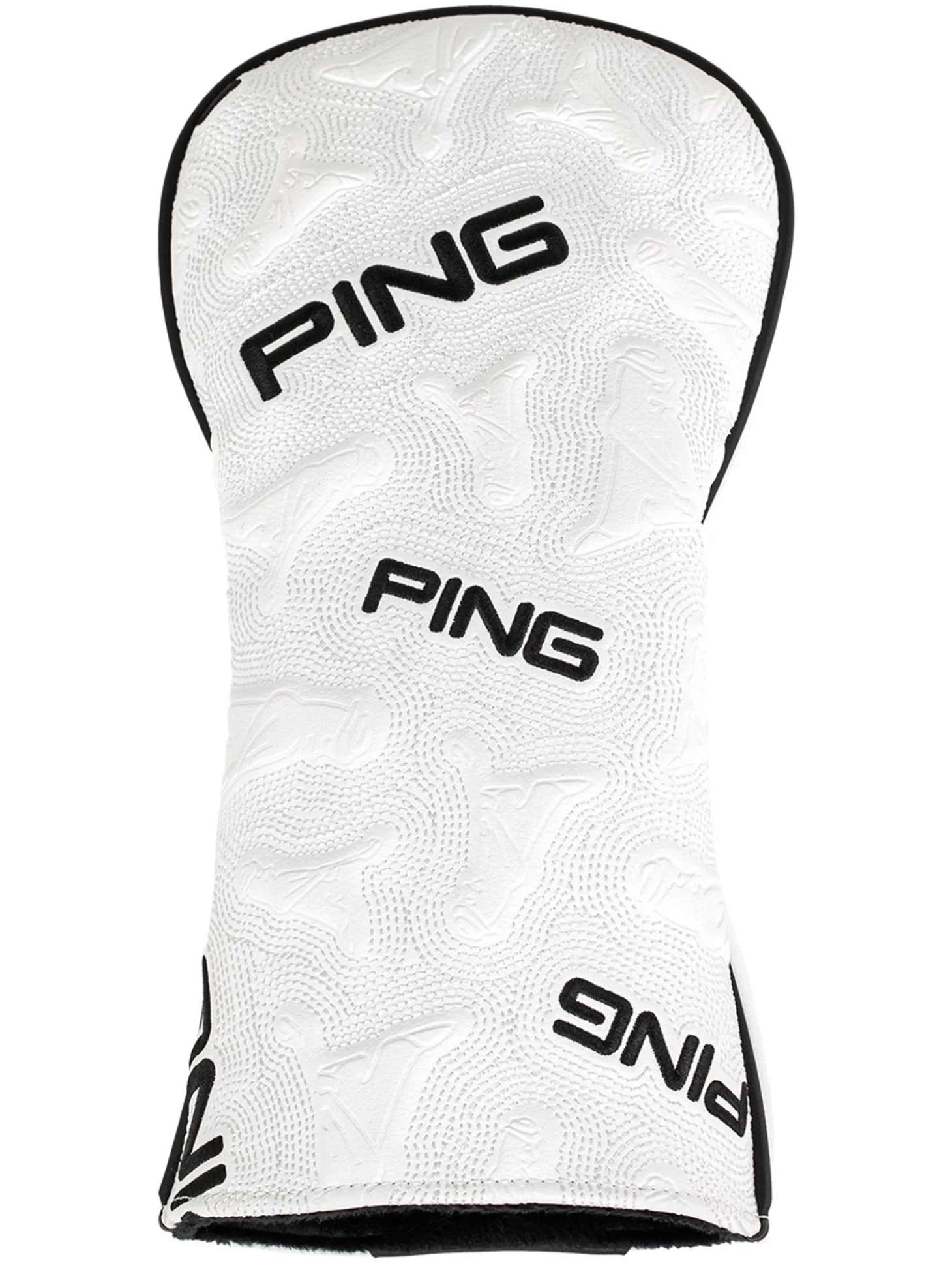 The PING Icon Headcover creates a distinctive appeal with the brand’s icon, Mr. PING surrounded by decorative stitching intermixed with debossed PING logos. It’s a fun and—because of its soft velour lining—practical means of covering your driver, fairway, and hybrid.