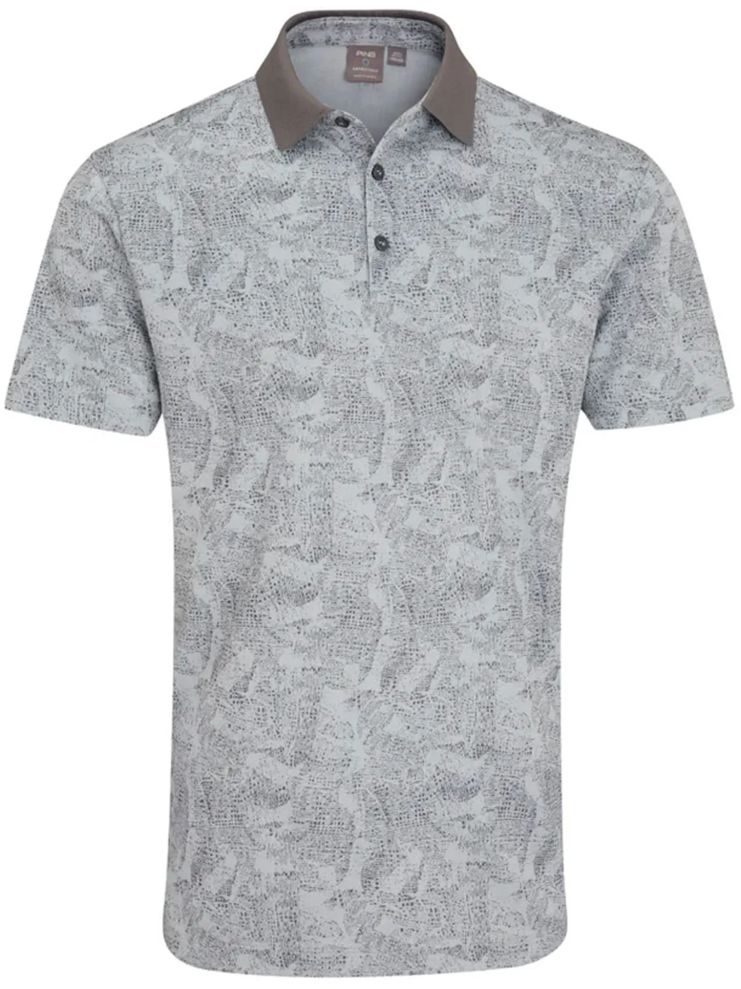 The Ping Jared Polo (Grey) is designed with a dynamic print and moisture-wicking fabric that combines performance with a touch of personality.