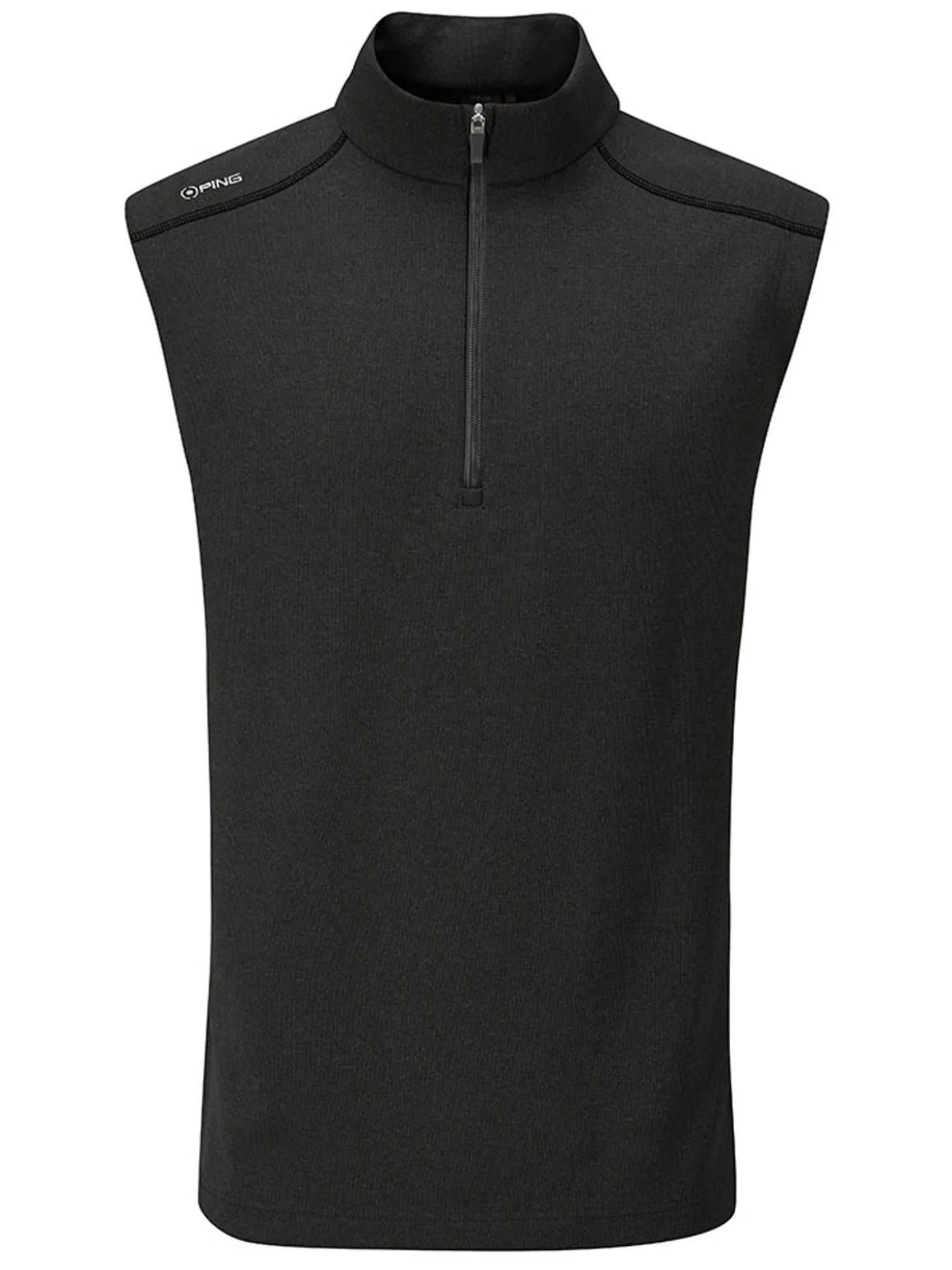 The Ping Ramsey 1/2 Zip Ribbed Fleece Vest (Black) is crafted to ward off the chill of an early-spring round for a cosy day at the course.