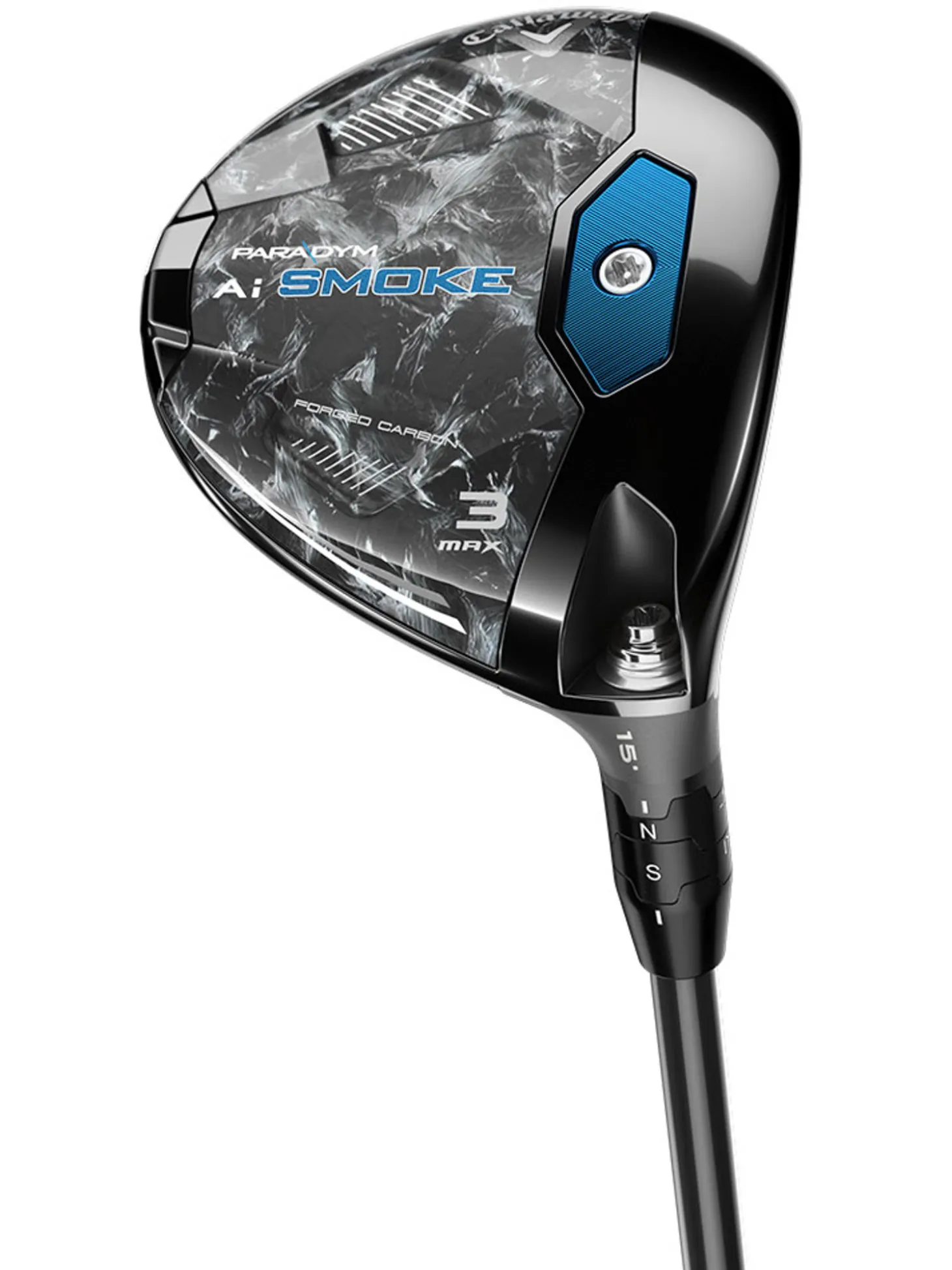 Ai Smoke fairway woods utilize Ai Smart Face; a breakthrough technology in face design that utilizes thousands of actual player swings. Every Ai Smart Face is designed to optimize launch and spin, creating sweet spots across the face. - A Paradym Shift from a Lighter, Stronger Carbon Chassis
