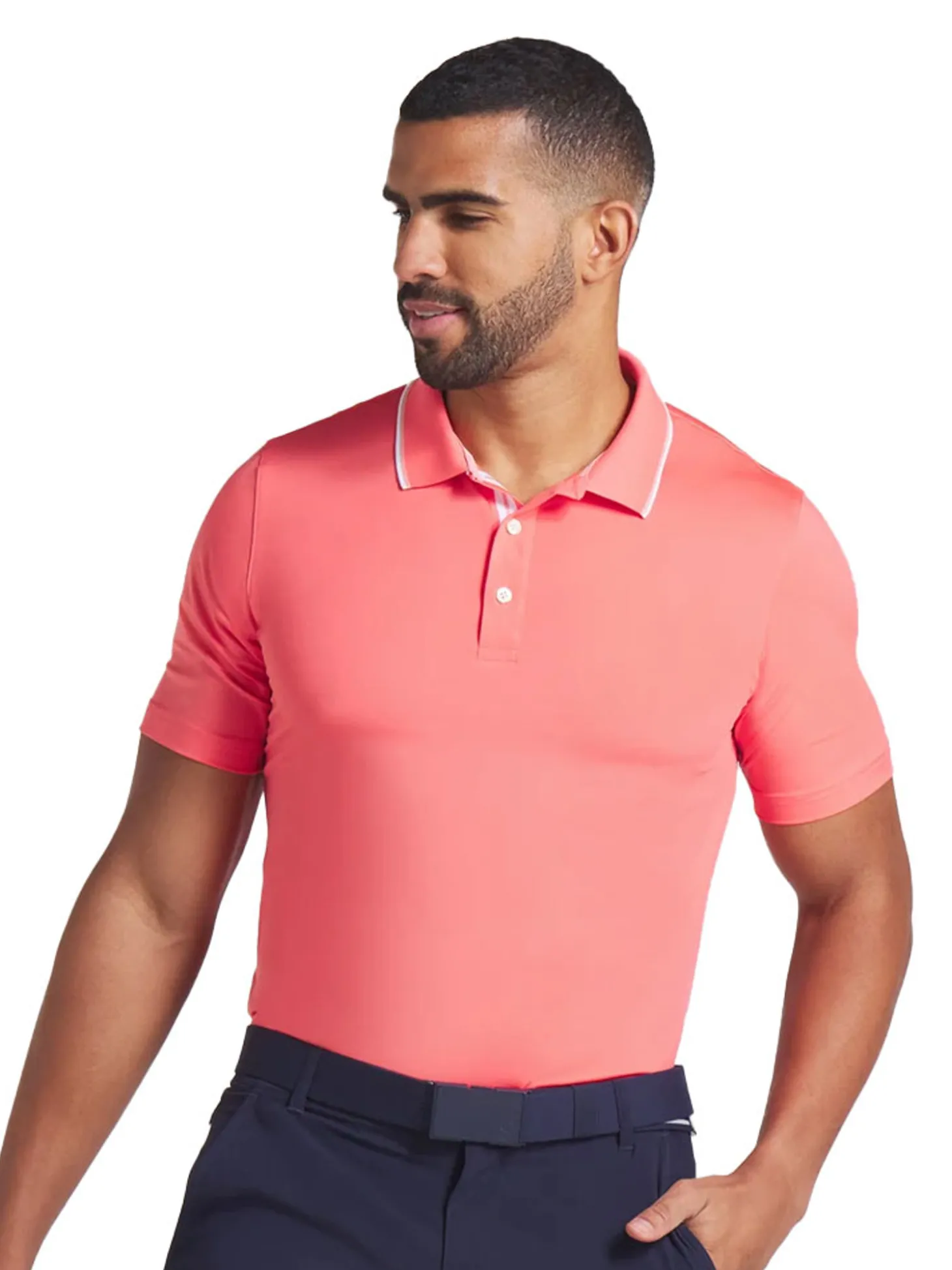 The Puma MATTR Elevated Solid Polo (Peach) is your ace on the green. With moisture-wicking, fast-drying fabric and four-way stretch, it keeps you feeling cool and focused. The flat knit collar with tipped detailing adds a touch of class, ensuring you look sharp from tee to green. Swing with confidence in PUMA.