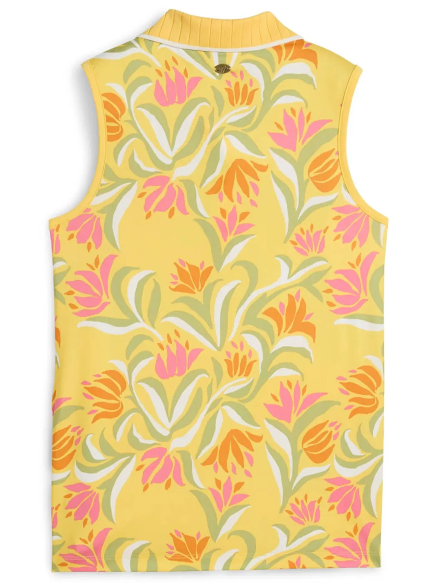 The Puma Womens x Dani Dazey Sleeveless Polo (Yellow) lets you enjoy cool-girl golf style. Based in LA, maximalist designer Dani Dazey brings her unique fashion sense to this special collection of women’s gear that includes dresses, skirts, shoes and more. This golf polo features our moisture-wicking dryCELL tech and a regular, sleeveless fit.
