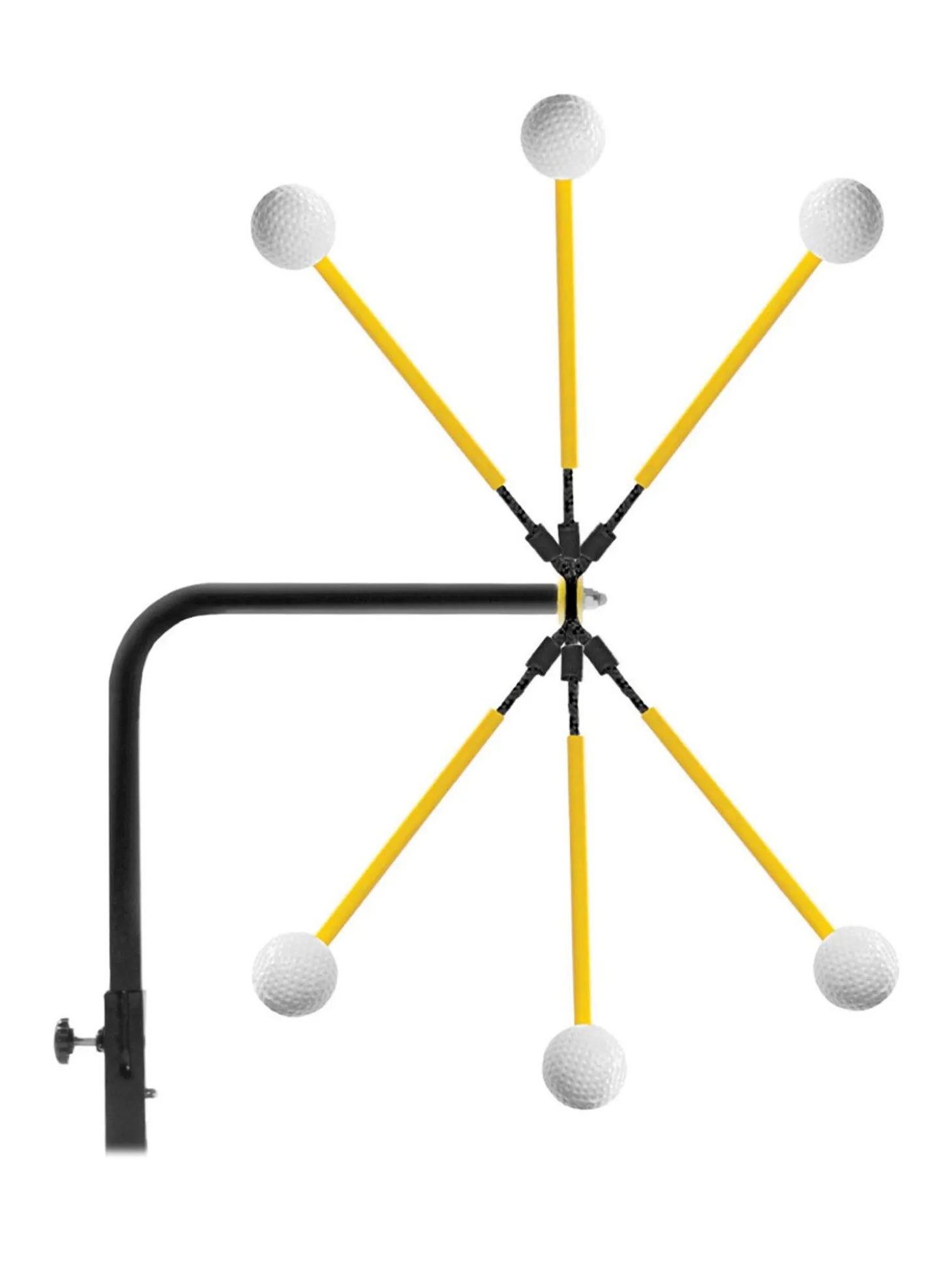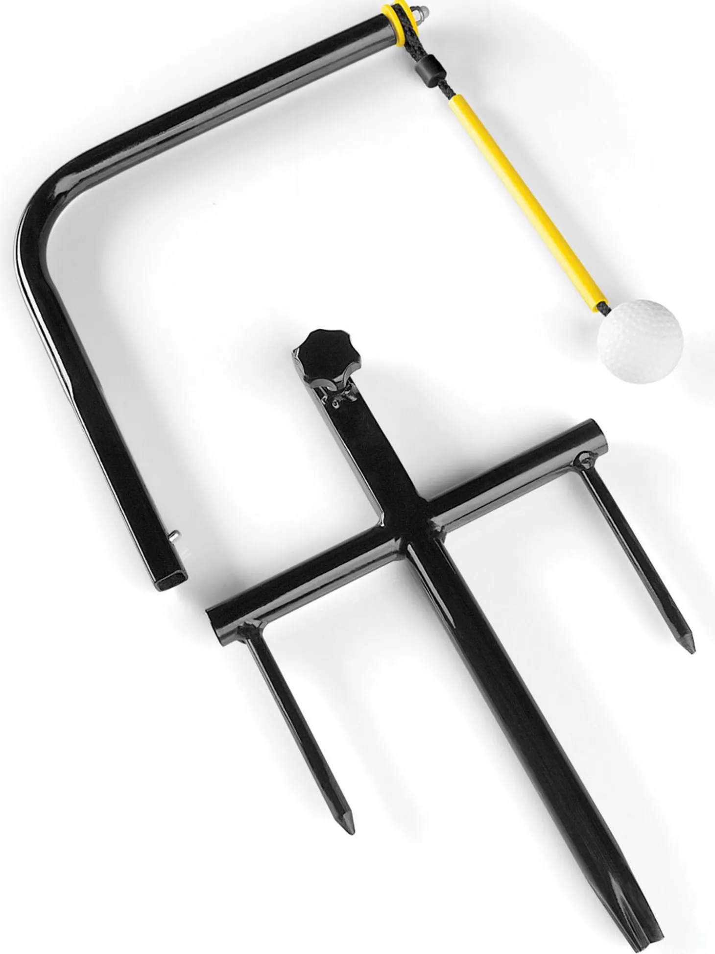 The SKLZ Pure Path Swing Trainer is a must-have training tool to correct and perfect your golf swing. The aid provides you honest and instant feedback on your swing while helping you eliminate slices and hooks. The attached target ball eliminates the need for a practice net, and you’ll never run out of golf balls and can be adjusted to different heights. Portable and lightweight, the Pure Path Swing Trainer sets up quickly and easily using stakes in the ground. The trainer can be hit with any wood, iron, or wedge club and is perfect for backyard training or on the range.