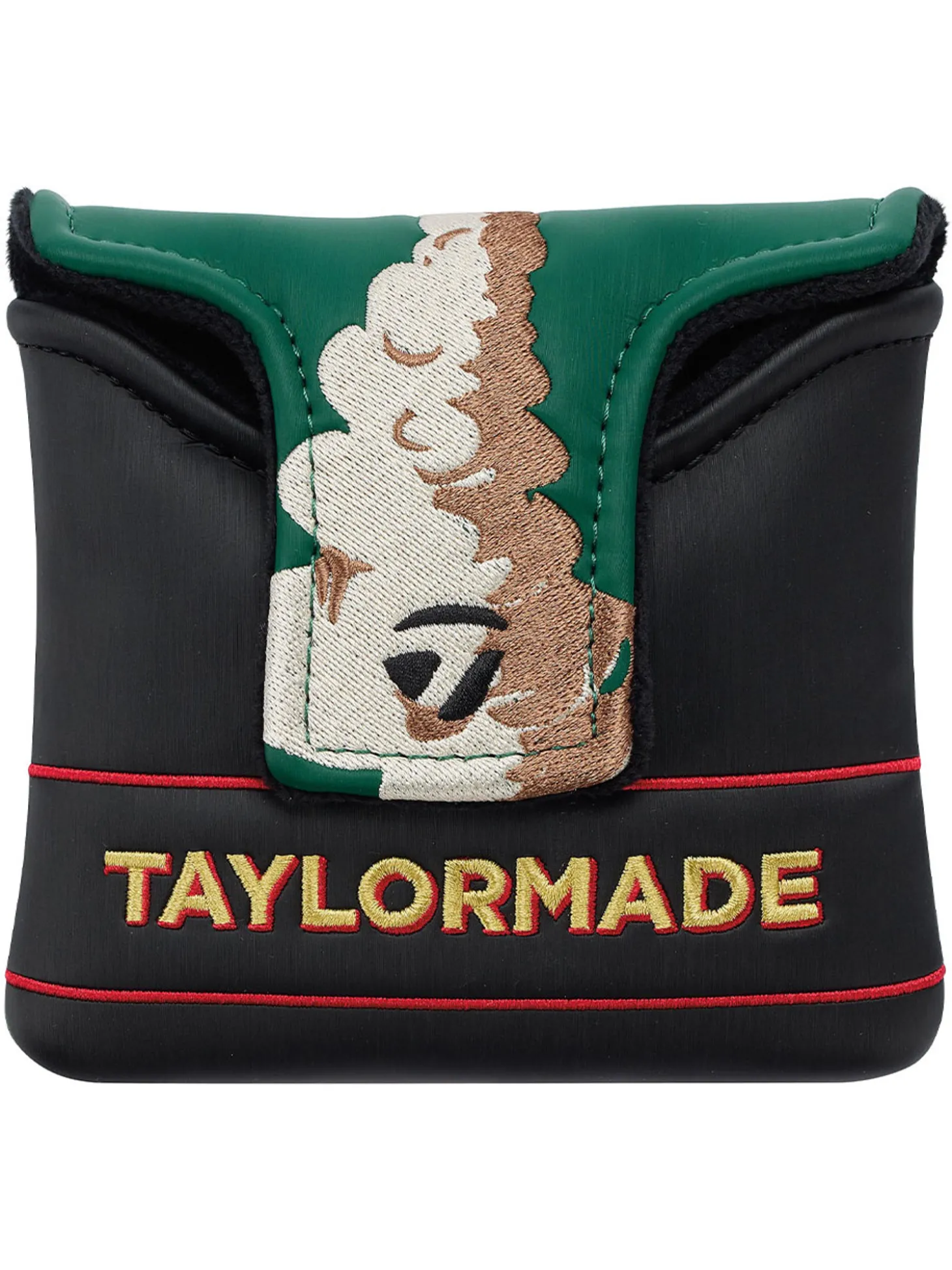 The TaylorMade 2025 British Open Limited Edition Putter Cover carries on many of the same design themes found in the staff bag. Here again, black, red, and green colourways with gold trim announce themselves, as do tributes to the iconic train.